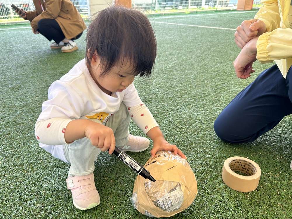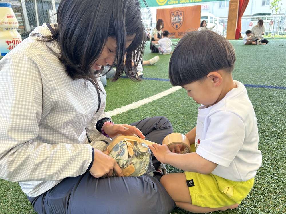 親子で新聞紙を丸めてサッカーボール作りにチャレンジします。手先を使ってモノを作る「工作」は子どもの成長には欠かせない重要な要素の1つとなります。工作を取り入れることで子供たちの好奇心に刺激を与え、集中力を高めます。