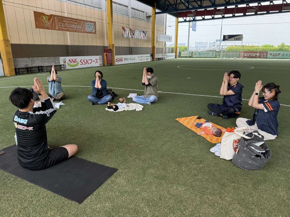 エスパルスが運営する全天候型施設「エスパルスドリームフィールド」を、静岡市に生まれてきてくれたベビーやパパママに向けて開放し、パパママストレッチ、助産師による相談コーナーやベビーマッサージ体験など、さまざまな体験を通じてそれぞれのご家族が自分達らしい育児を見つけてもらうための応援イベントとなりました。
