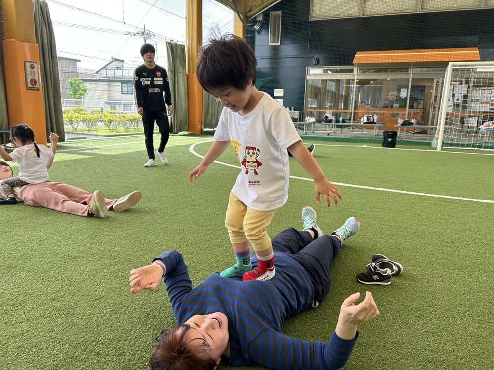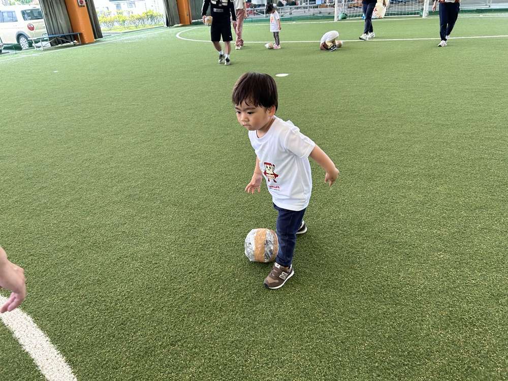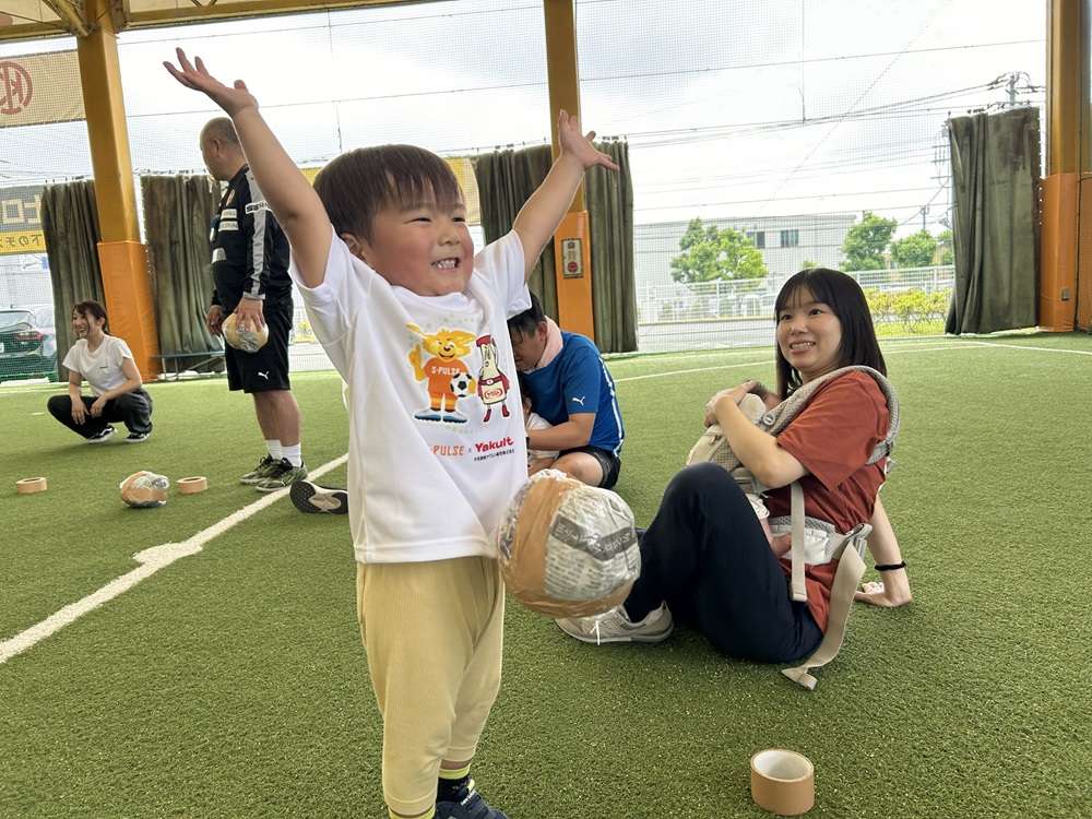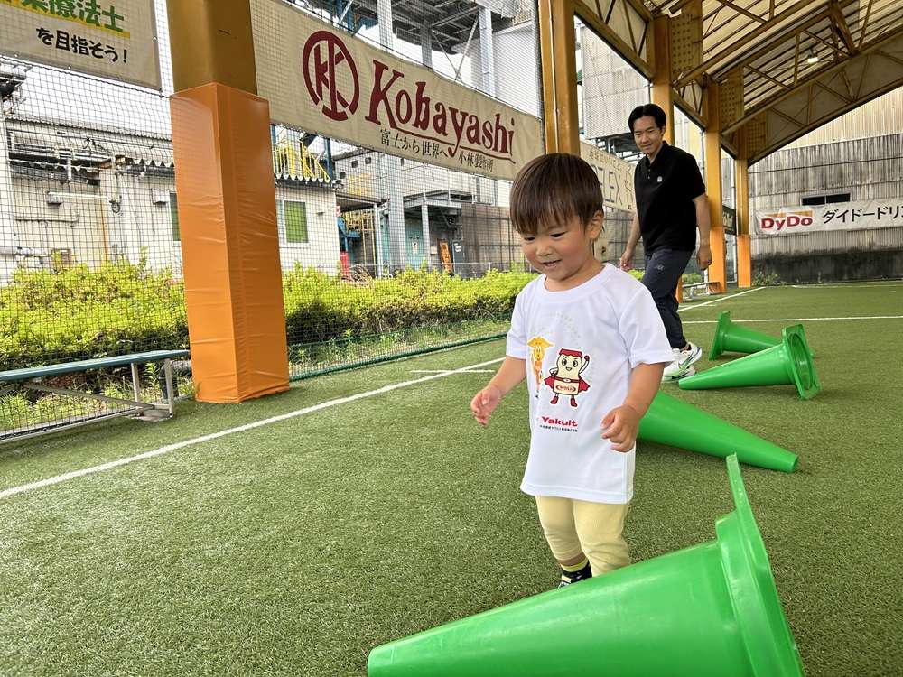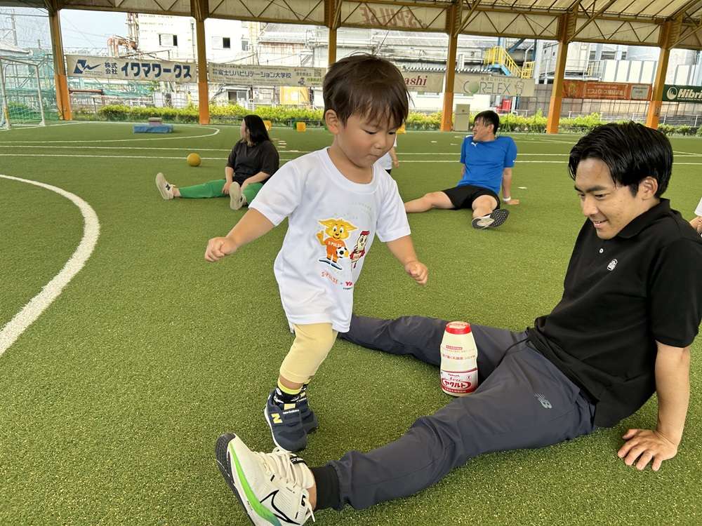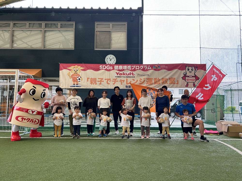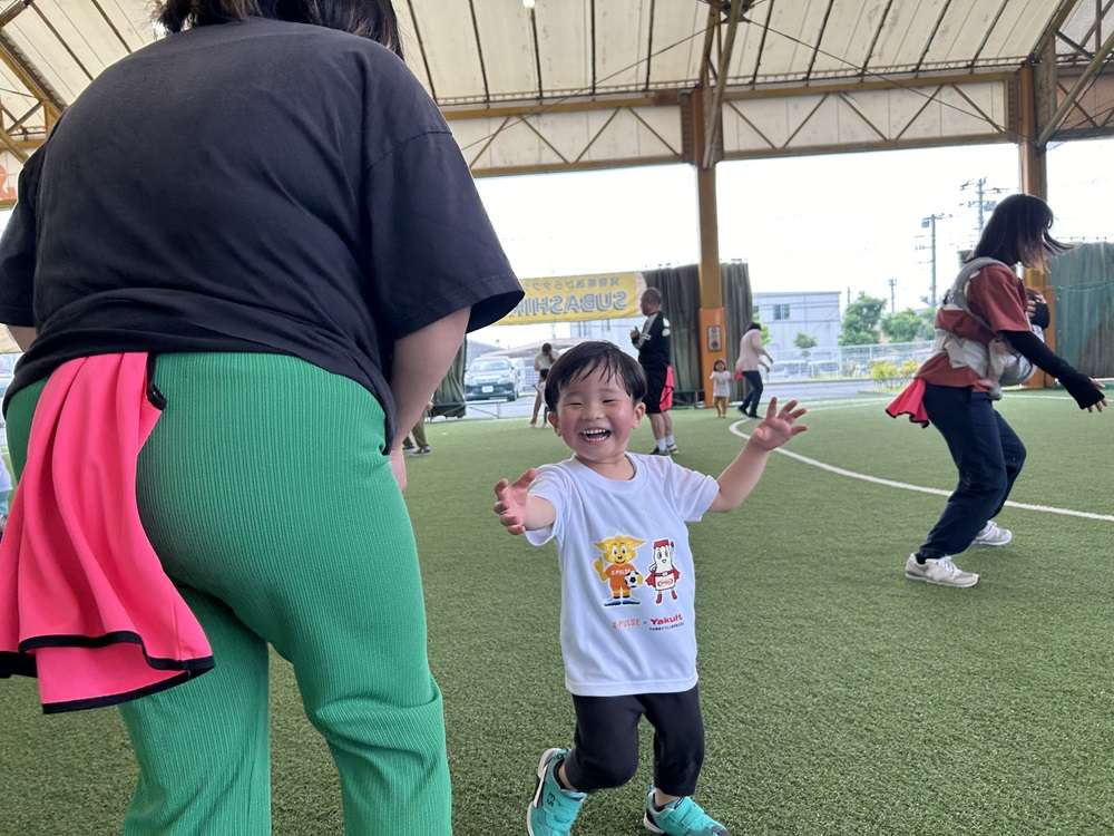 エスパルスは、SDGs健康増進プログラムの一環として、中央静岡ヤクルト販売株式会社様のご支援のもと、2歳~4歳児を対象とした「親子でチャレンジ運動教室」を2025年5月21日にSDF富士にて開催し、8組の親子の皆さんに参加いただきました。