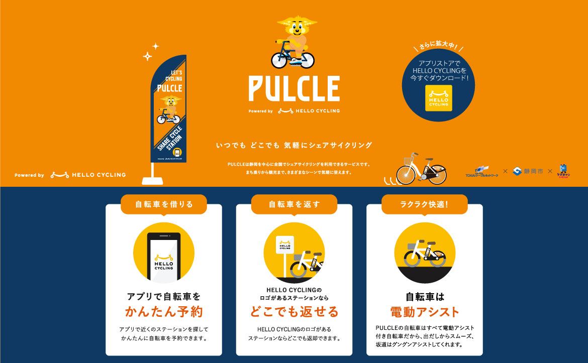 静岡市シェアサイクル"PULCLE"は全国でシェアサイクルを利用できるHELLO CYCLINGのプラットフォームを利用したサービスです。2025シーズンも昨年同様ホームゲームにてPULCLE専用臨時駐輪場を設置します。