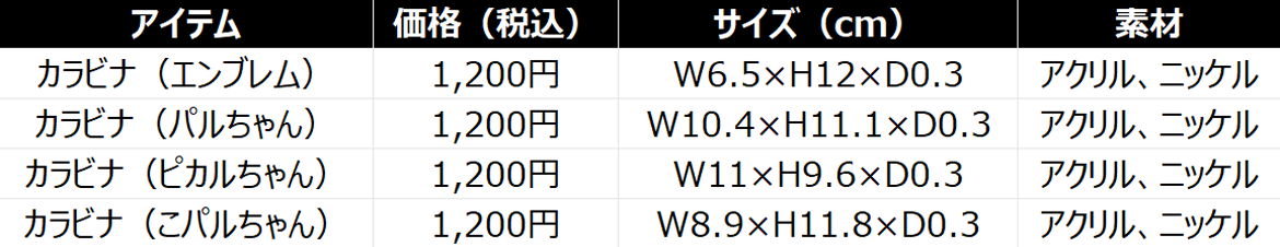 エンブレムとパルちゃんファミリーデザインのカラビナです。