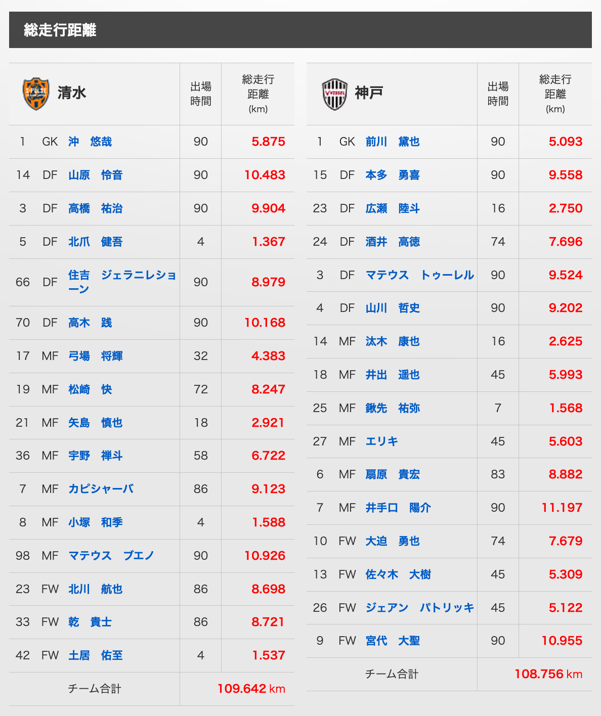 【9/27 明治安田J1リーグ 第32節 vs 神戸】トラッキングデータ