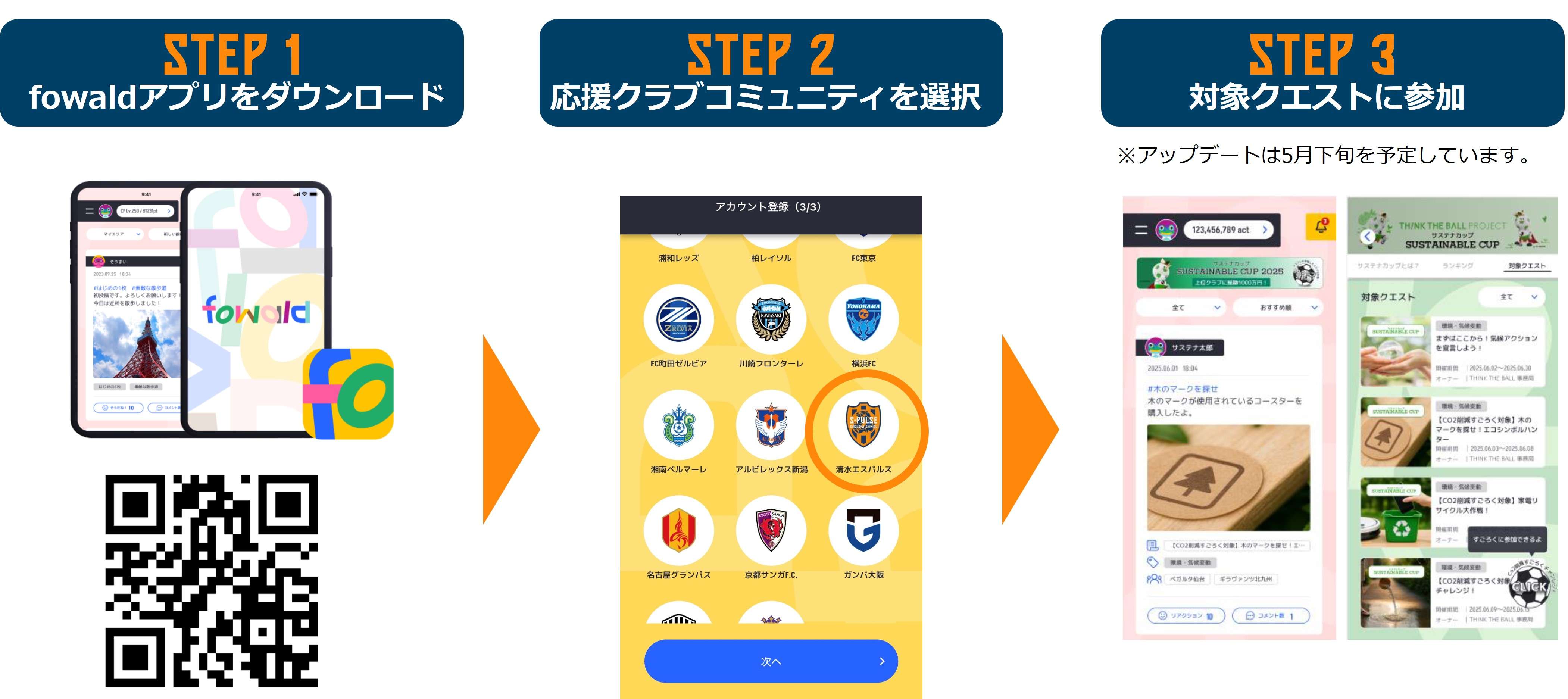 ・スマホアプリより、マイエコバッグの写真投稿など、対象クエスト(環境に良いアクション)に参加して、応援クラブをタイトル獲得に導いてください!