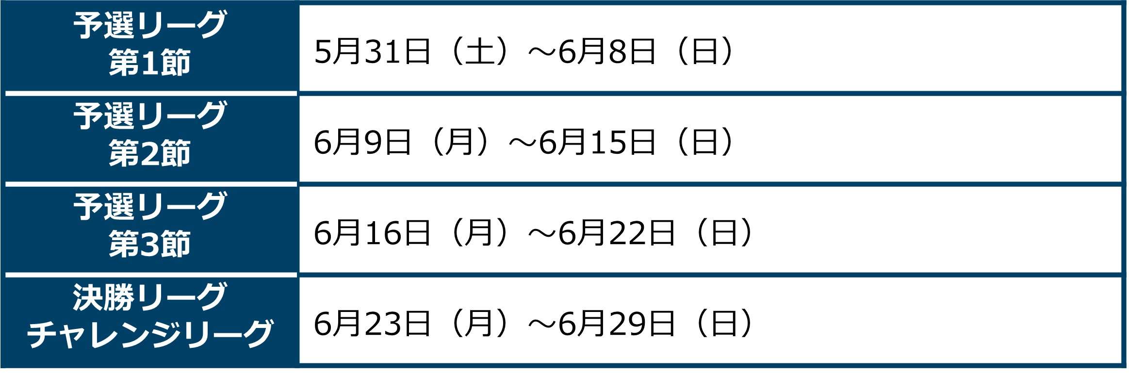 予選リーグは各節ごとに総活動量を区切り、その総活動量に応じてチームに勝ち点が配布されます。勝ち点は節ごとに変動するため(第1節の1位が15点、第3節の1位が25点など)逆転の可能性があります。第4節では各グループの上位5クラブ(計15クラブ)が決勝リーグに進出し、残りの45クラブはチャレンジリーグに進みます。決勝リーグとチャレンジリーグでは、活動量の総量×アクティブ率でランキングが決定されます。