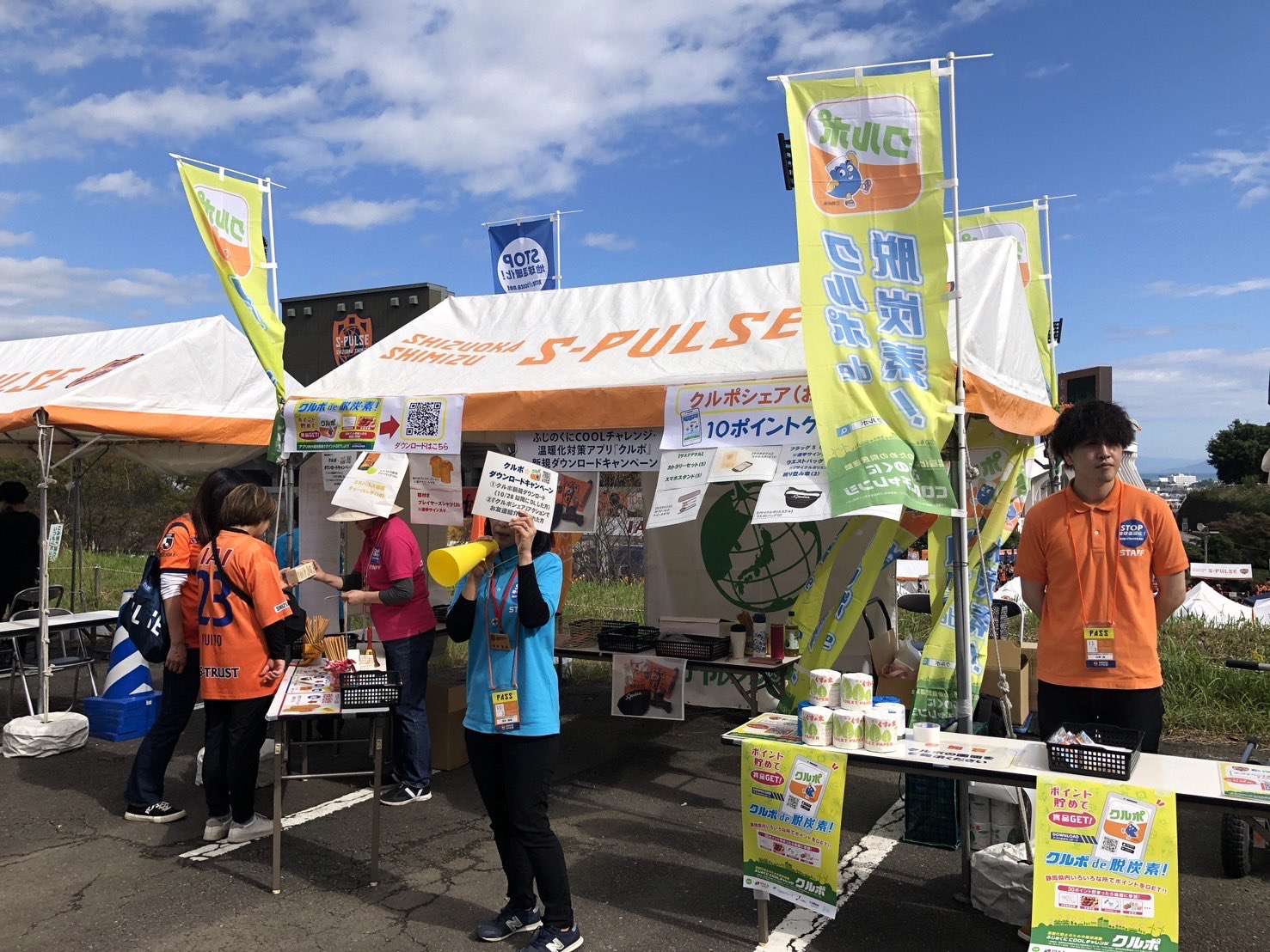 エスパルスも協力している静岡県温暖化対策アプリ「クルポ」紹介ブースを出展。様々な環境アクションでポイントをためてプレゼントに応募できます。ぜひアプリをダウンロードください!(協力:ふじのくにCOOLチャレンジ実行委員会)