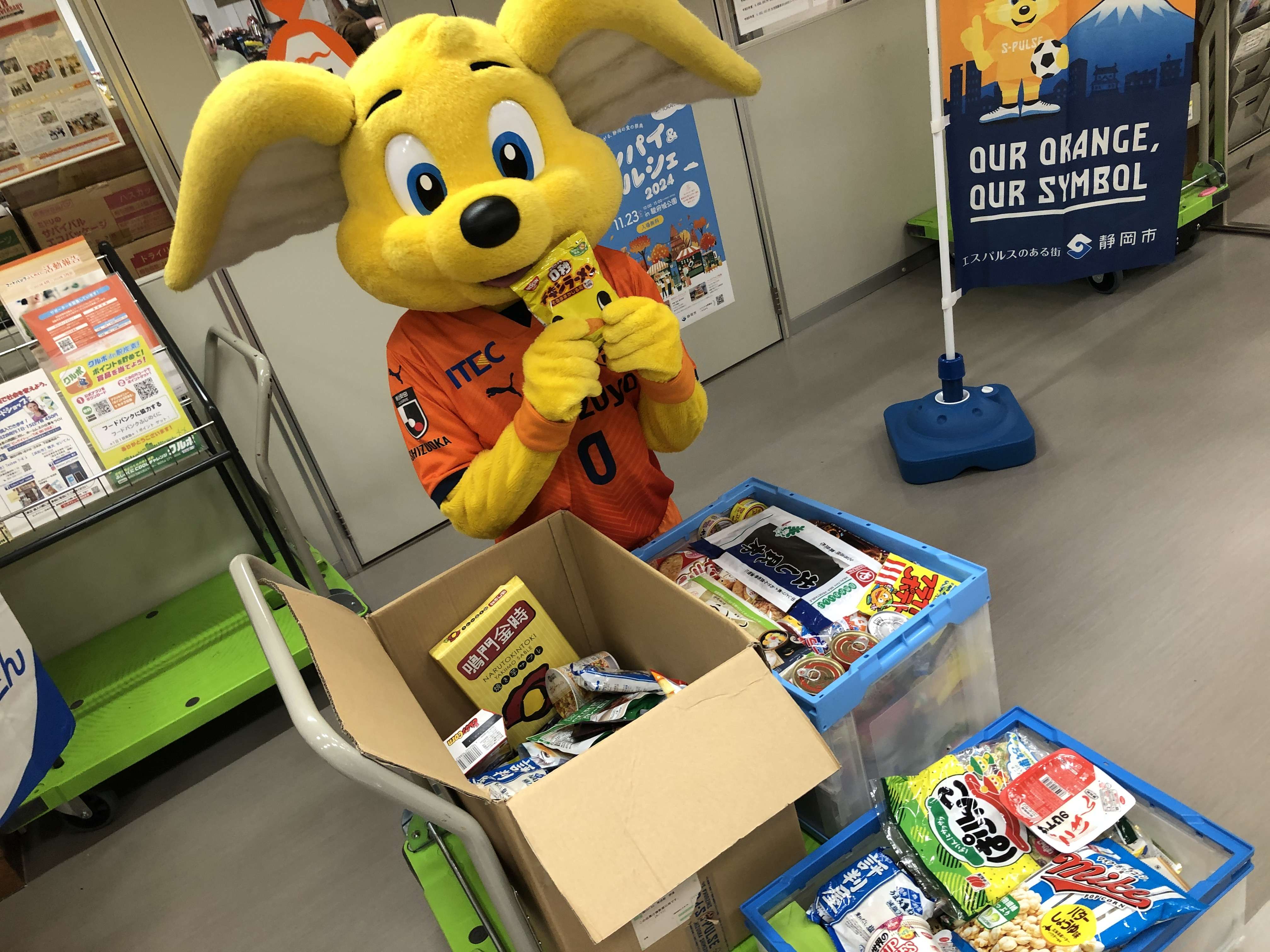 食品をお持ちいただいた方はエスパルス選手サイン入りグッズなどが当たる抽選会にご参加いただけます。(賞品がなくなり次第終了となります)