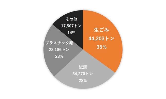 令和5年度に家庭から出された燃えるごみの量は約12万4,200トンで、生ごみ、紙類、プラスチック類の割合が大きく、生ごみの約30%が食品ロスです。
