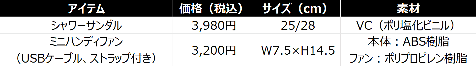 夏に活躍するシャワーサンダルとハンディファンが登場!