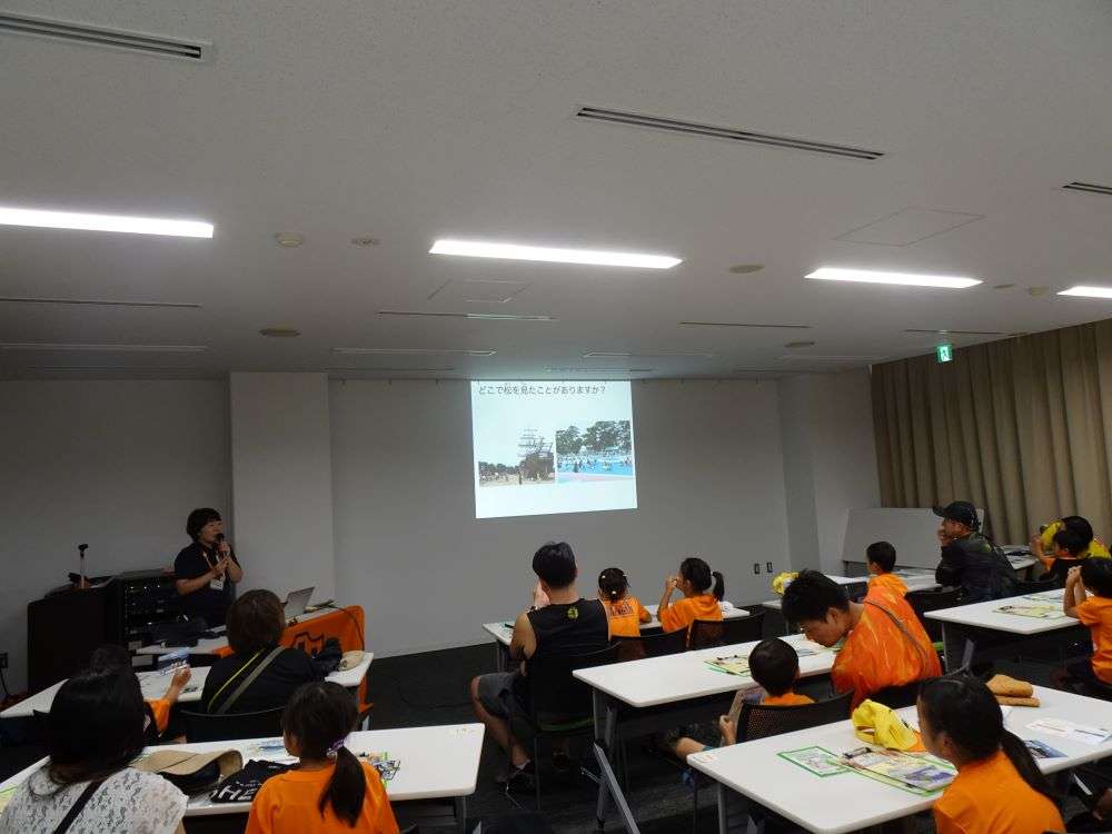 エスパルスと三保松原のつながりや、三保松原の価値や歴史、松原保全について学びます。