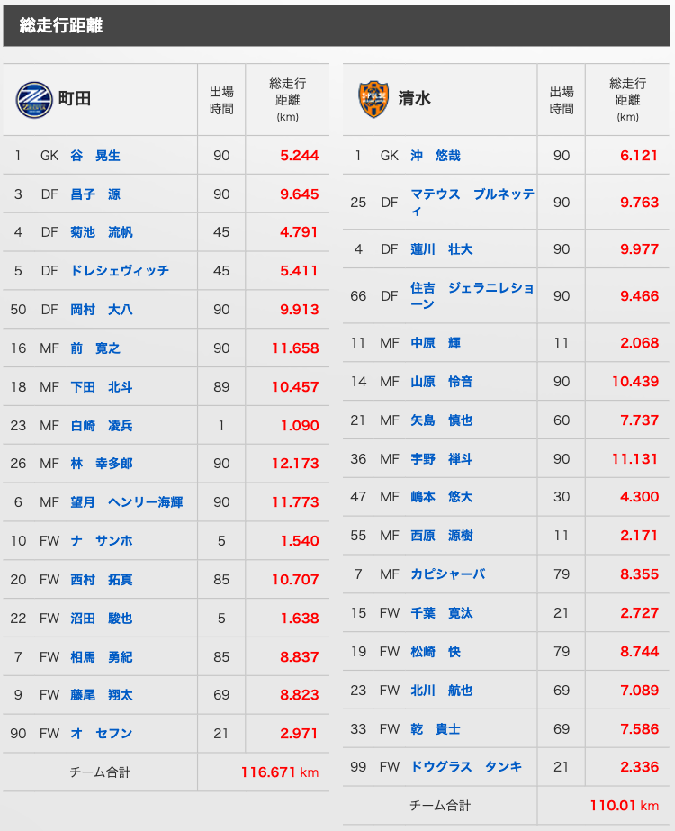 【10/25 明治安田J1リーグ 第35節 vs 東京V】トラッキングデータ