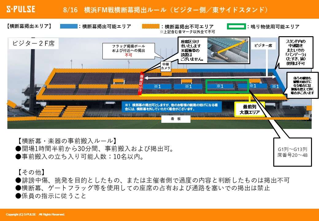 ・ビジターエリア(東サイドスタンド2F指定席の一部)を設置いたします。