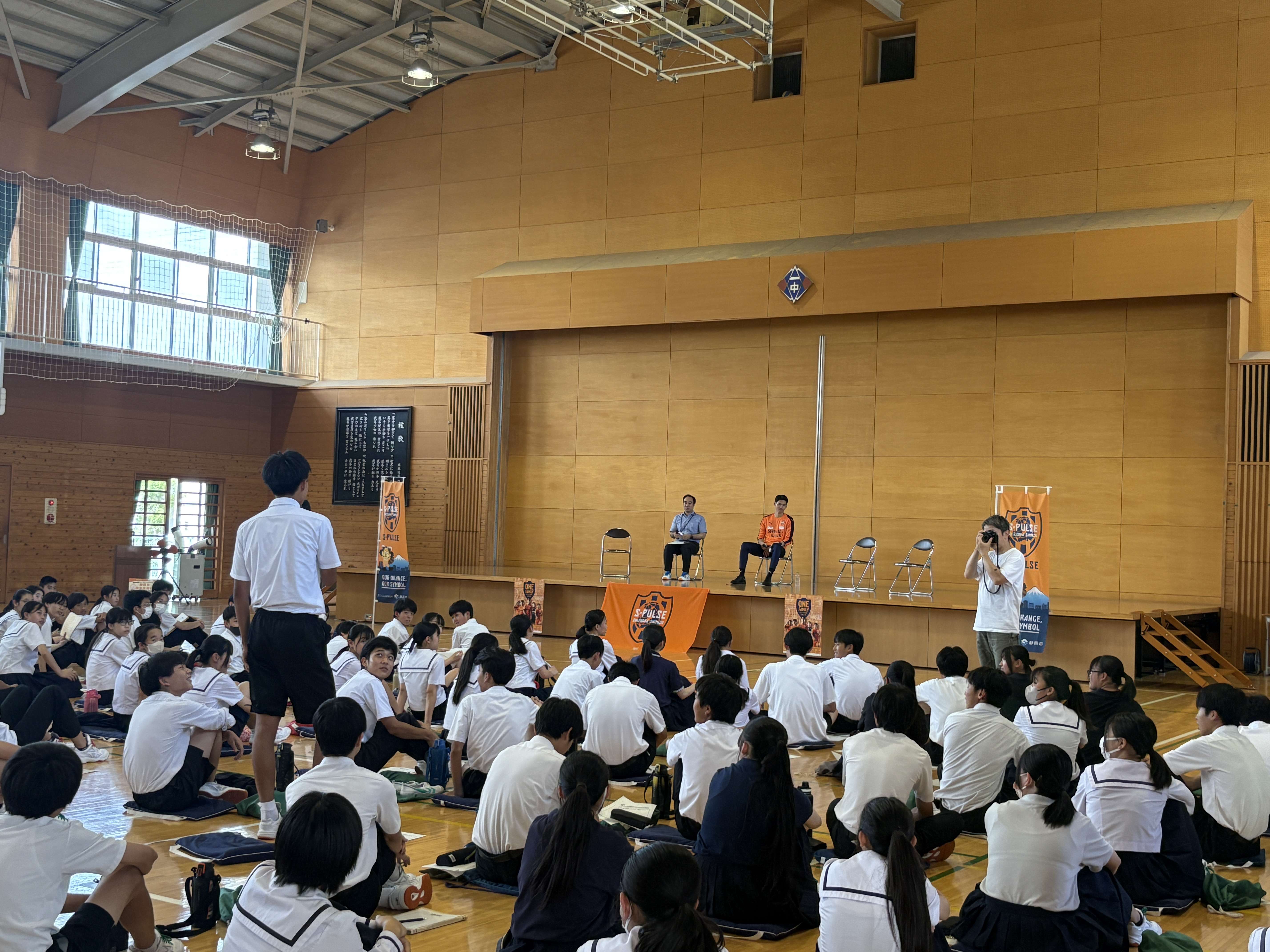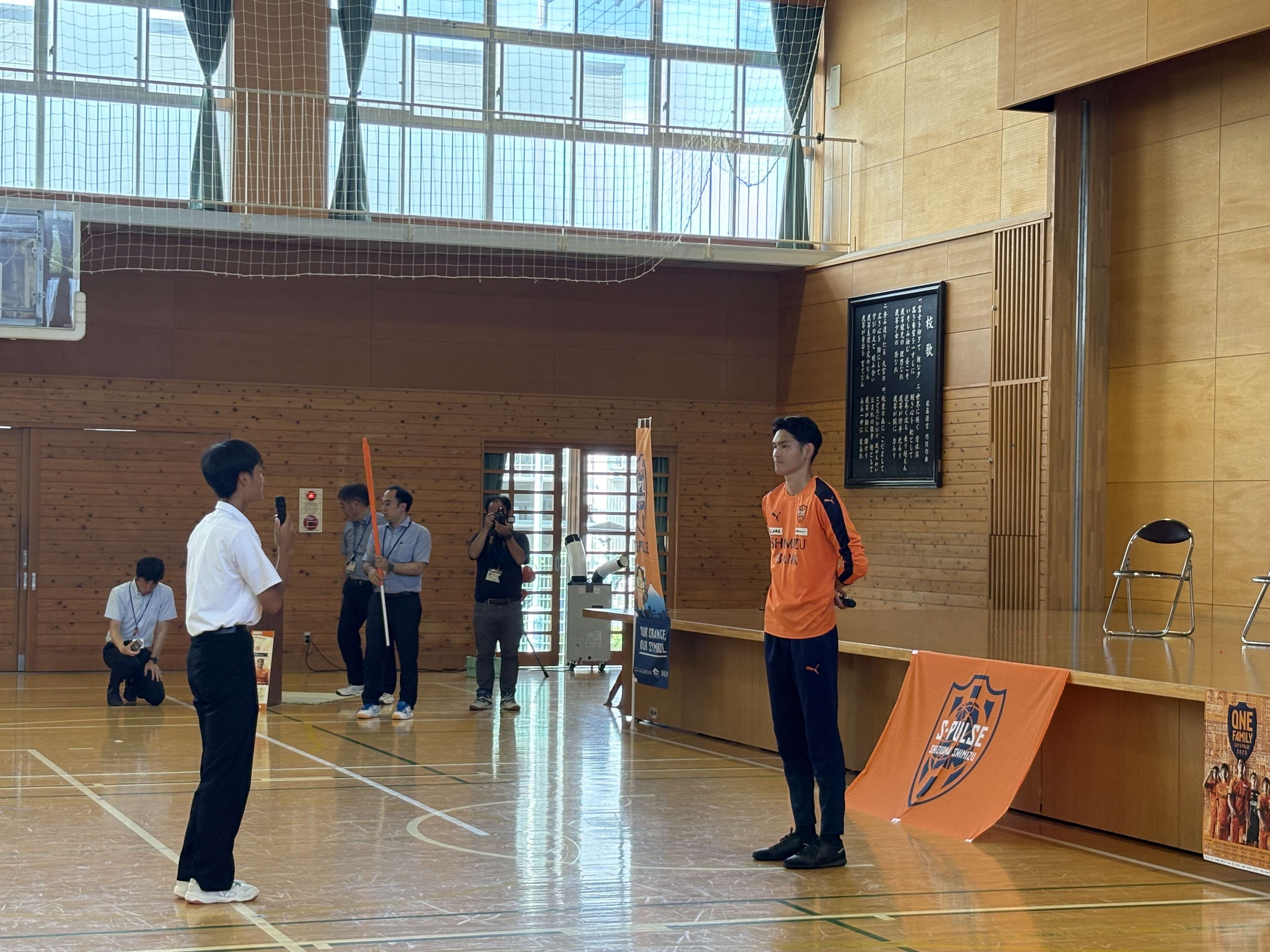 6月25日(水)、エスパルスが実施するホームゲーム招待企画『静岡市中学生招待事業』(トップパートナー: 山内木材産業株式会社)(パートナー:せいうん法律事務所、株式会社Alii Sports Management)の御礼企画として、阿部諒弥選手がホームタウン静岡市の静岡市立清水第一中学校(全校生徒284名)を訪れ、交流を深めました。
