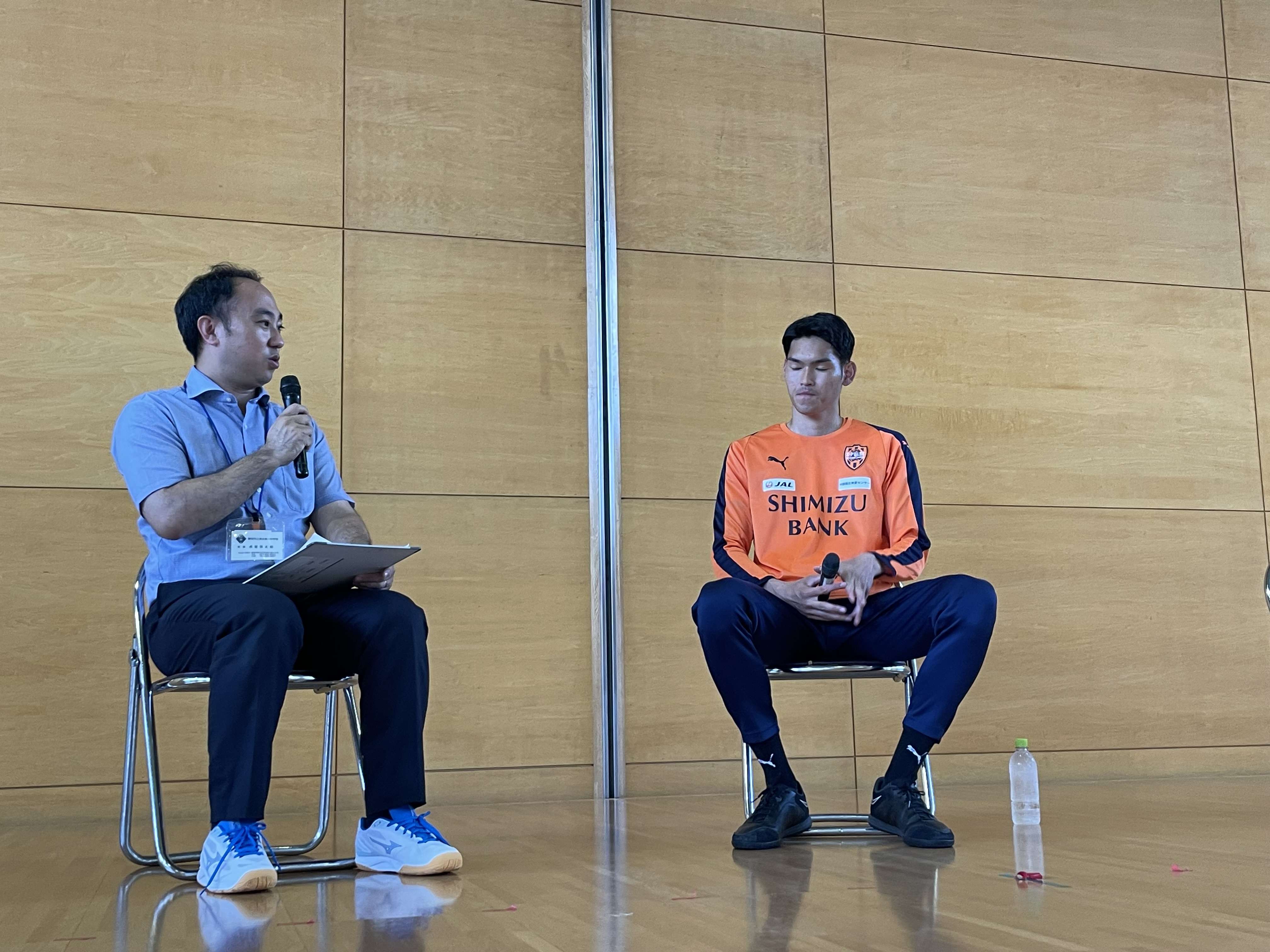 その後、先生からの質問に答える対談形式で、学生時代やプロサッカー選手についてのトークセッションを行いました。