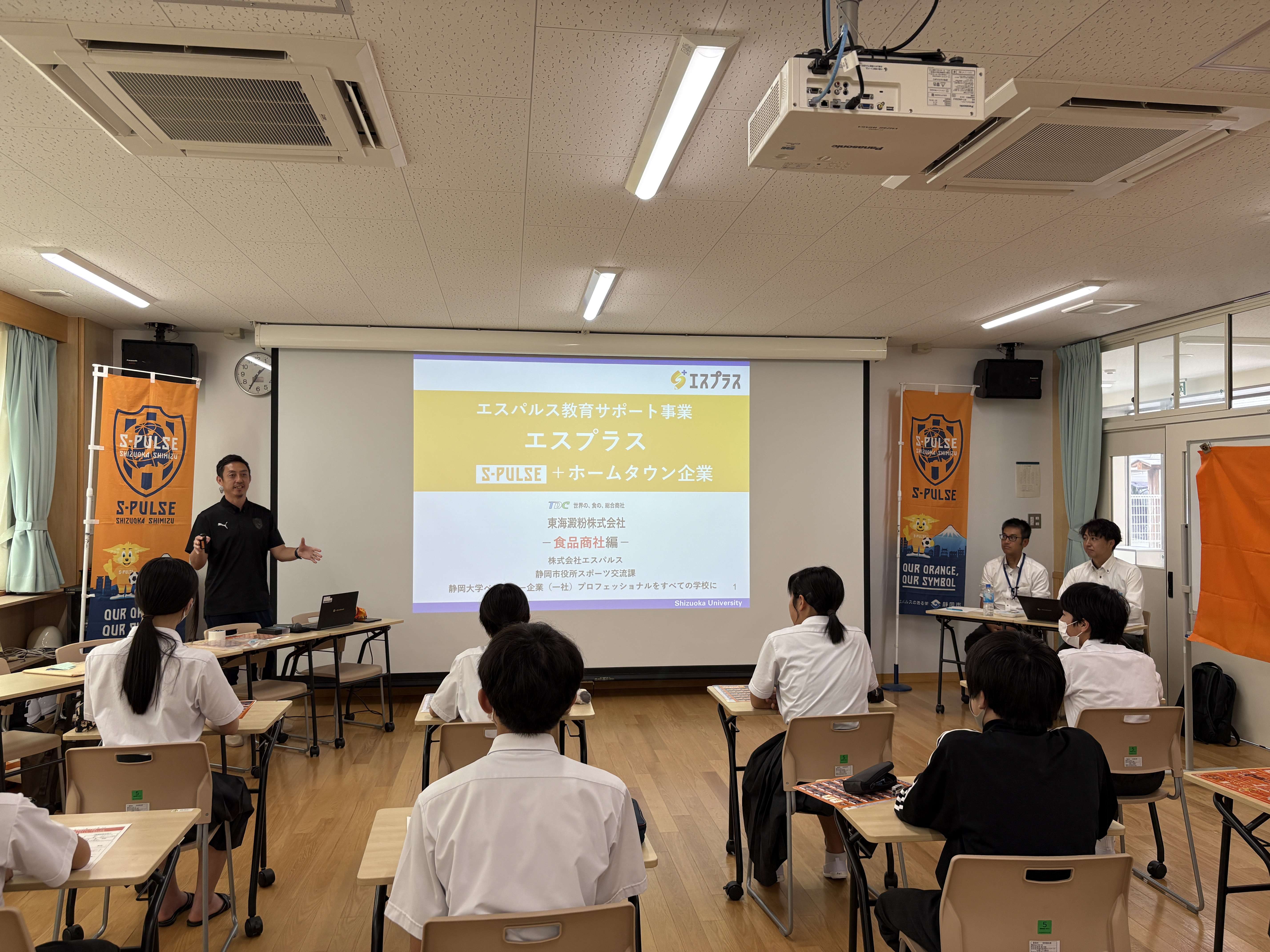 「エスパルス」に様々な内容を「プラス」して学ぶキャリア教育授業として実施している『エスプラス』は、エスパルスの選手、スタッフ、また地元企業の社員がゲスト講師となり、小中学校を訪問し児童生徒と共に学ぶ‘ホームタウン次世代育成プロジェクト’です。