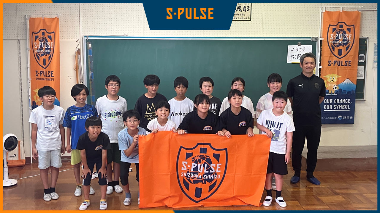 今回の授業は、静岡市立松野小学校全校生徒31名を対象に、清水エスパルス ユース コーチの横山貴之が講師となり『エスプラス ~元プロサッカー選手編~』のキャリア教育授業を実施しました。