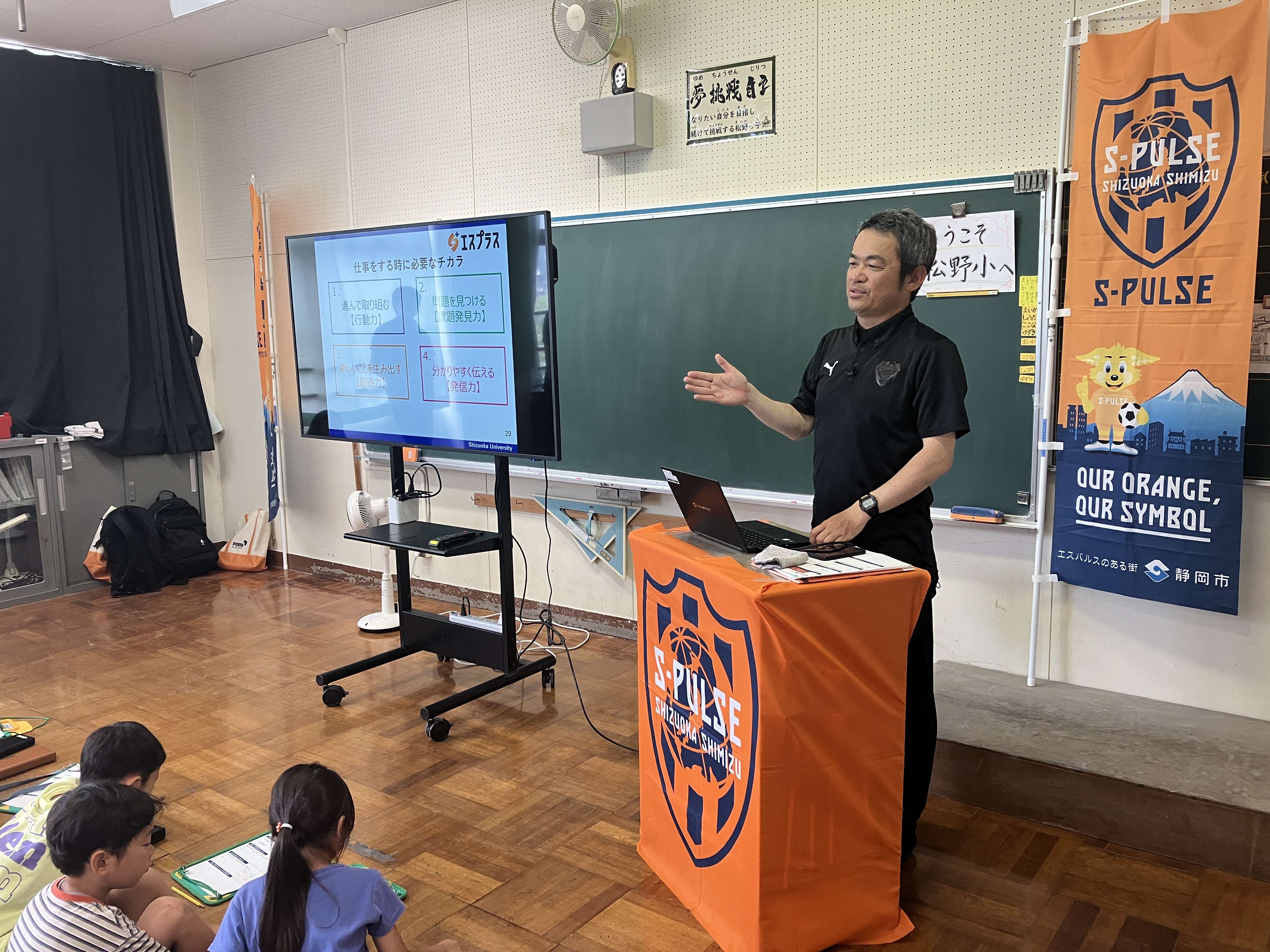 「エスパルス」に様々な内容を「プラス」して学ぶキャリア教育授業として実施している『エスプラス』は、エスパルスの選手、スタッフ、また地元企業の社員がゲスト講師となり、小中学校を訪問し児童生徒と共に学ぶ‘ホームタウン次世代育成プロジェクト’です。