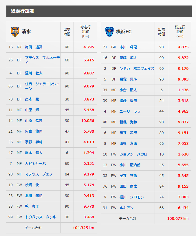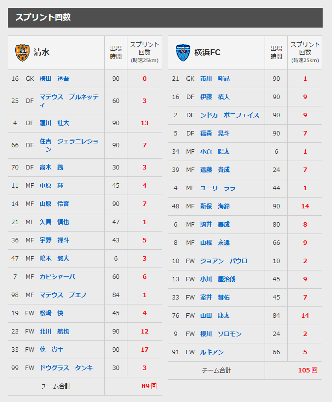 【10/25 明治安田J1リーグ 第35節 vs 東京V】トラッキングデータ