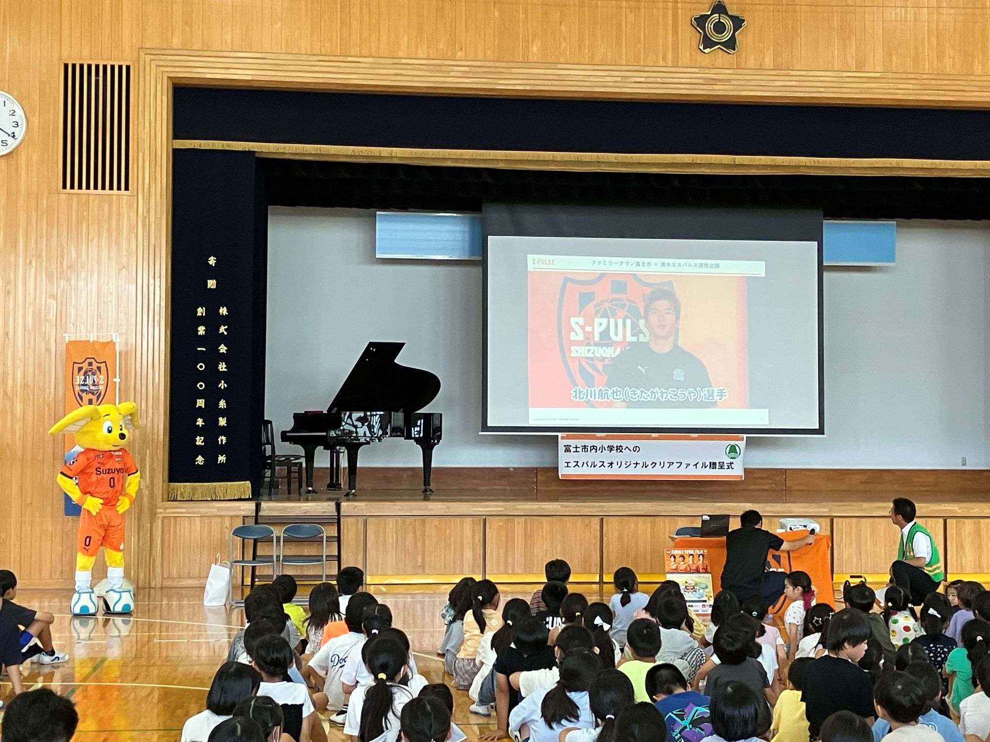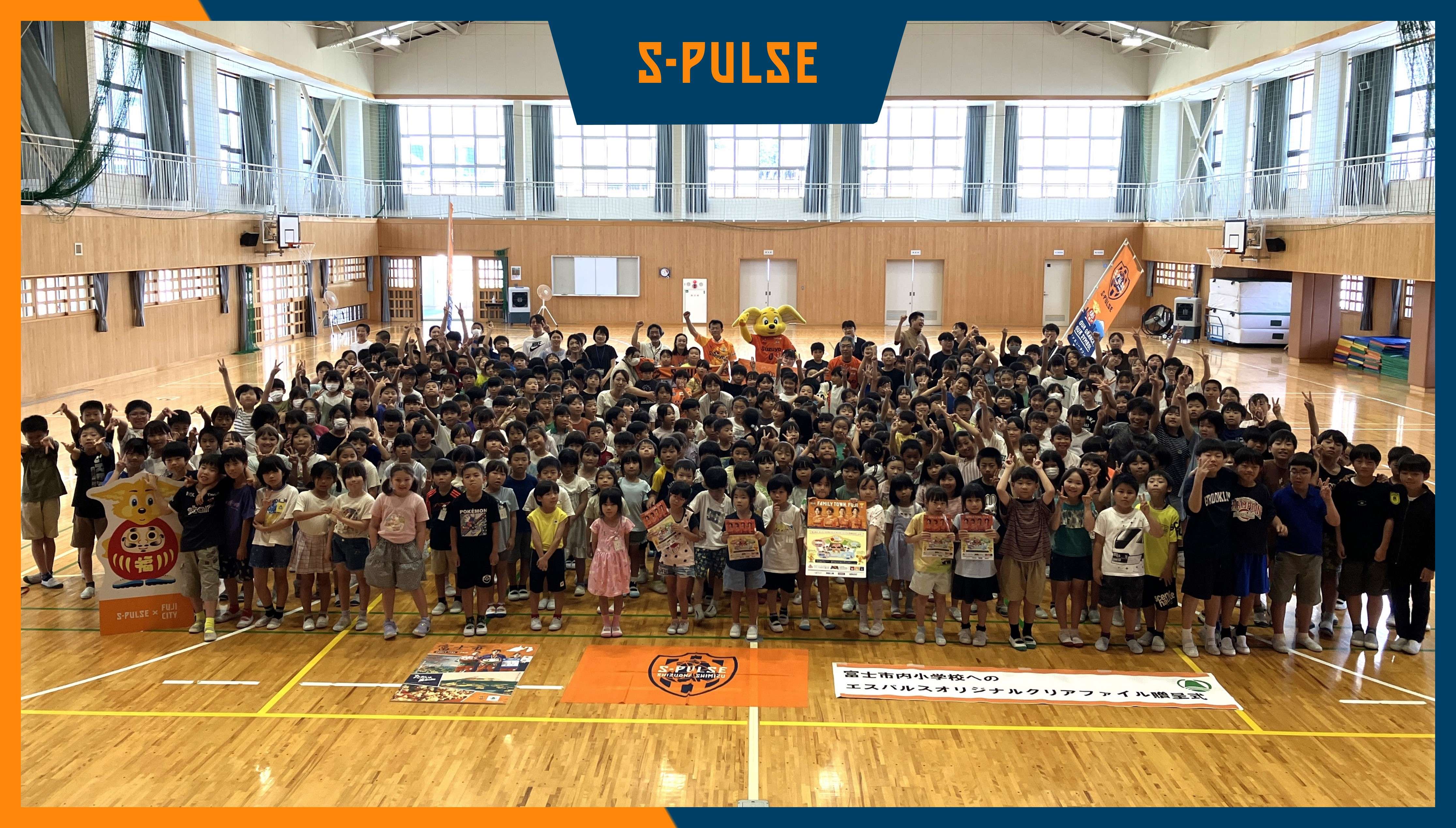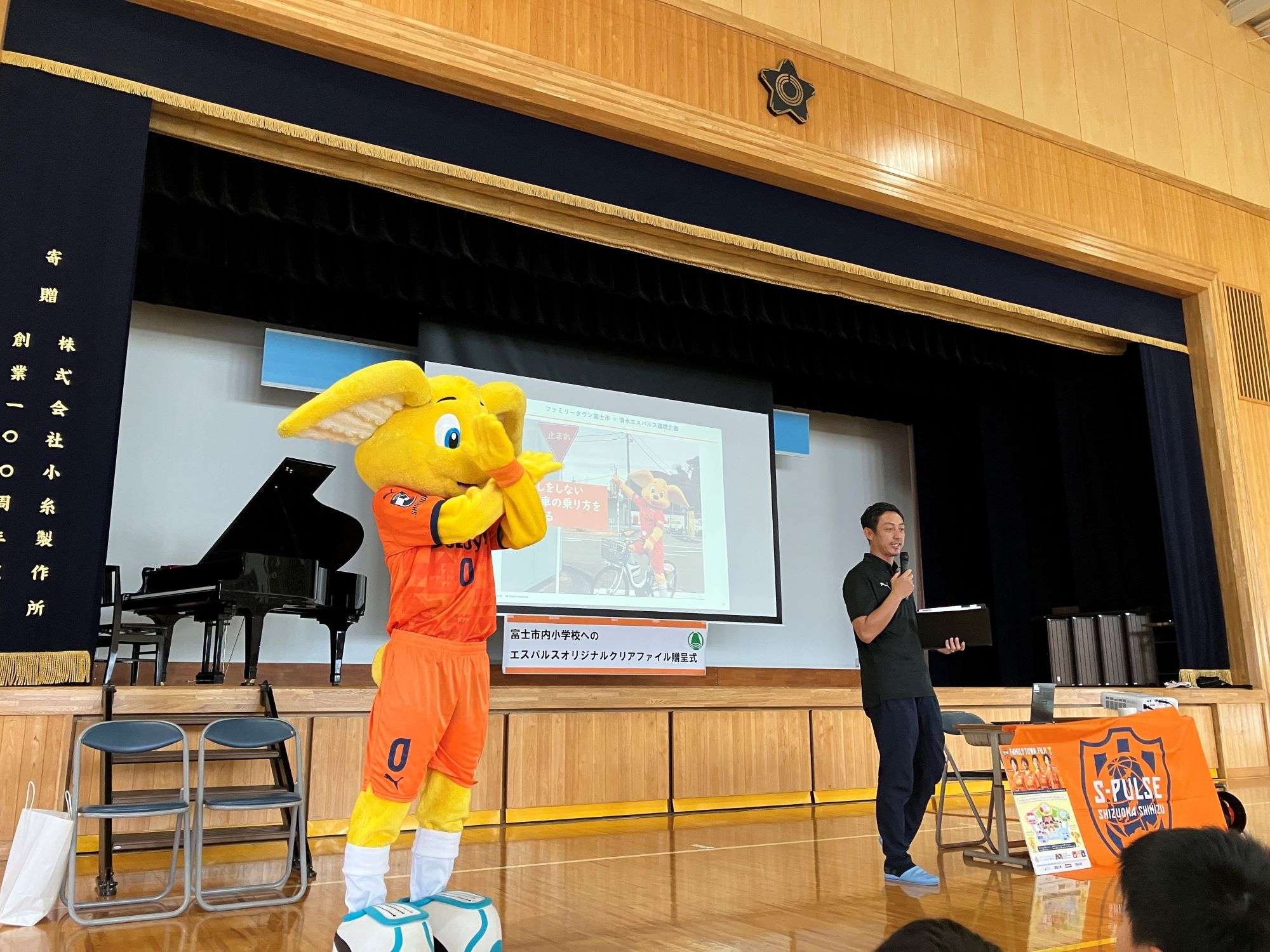清水エスパルスは、富士市とのファミリータウンパートナーシップ協定に関連する教育事業の一環として、富士市内の企業4社 コアレックス信栄株式会社様、興亜工業株式会社様、株式会社マキヤ様、株式会社山清倉庫様と協働し、市内の全小学生へクリアファイルを贈呈しました。