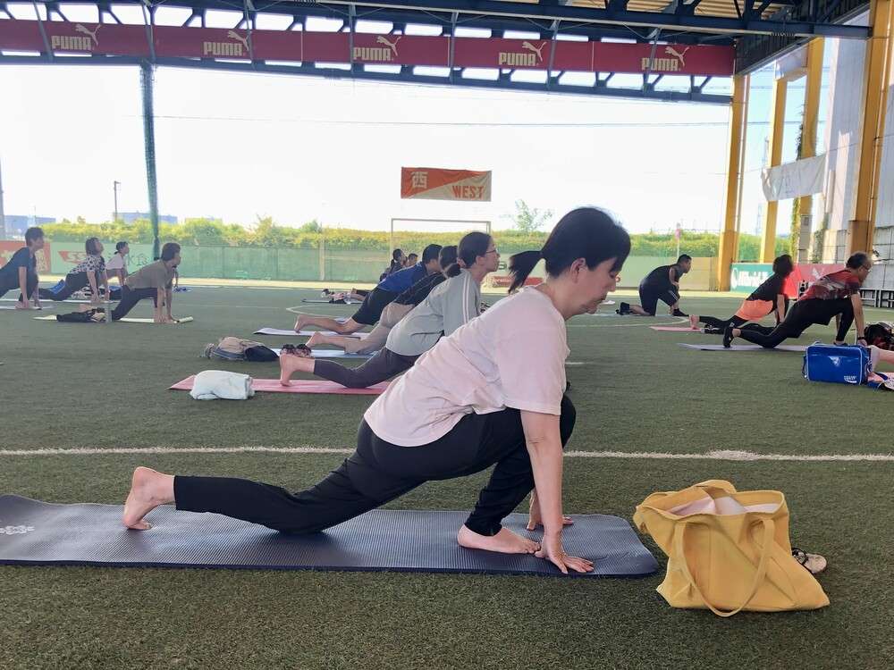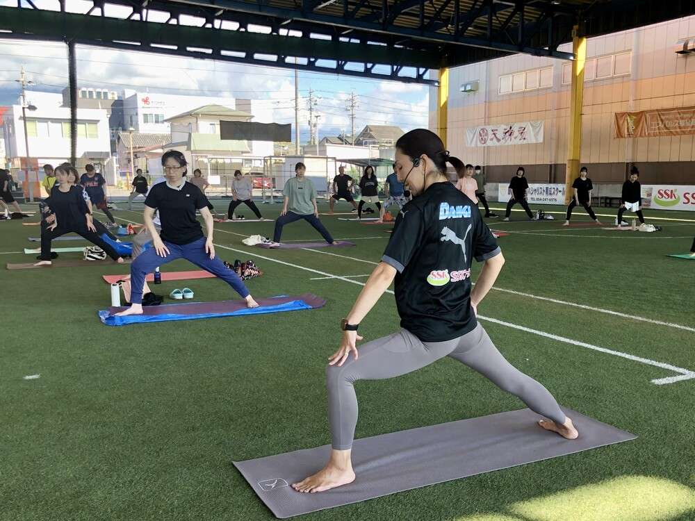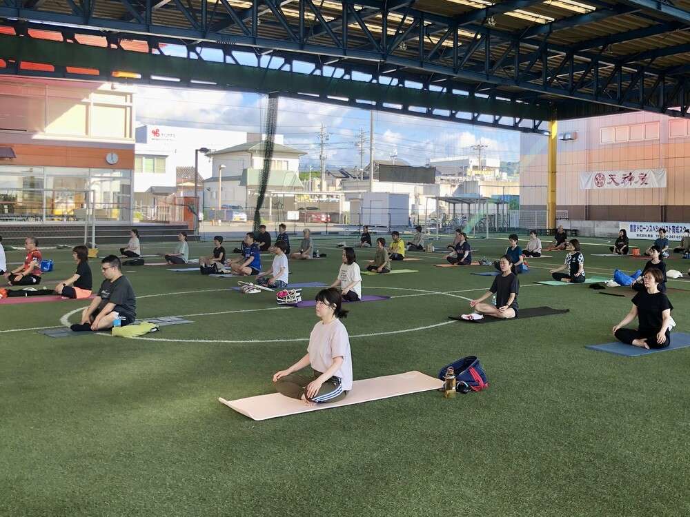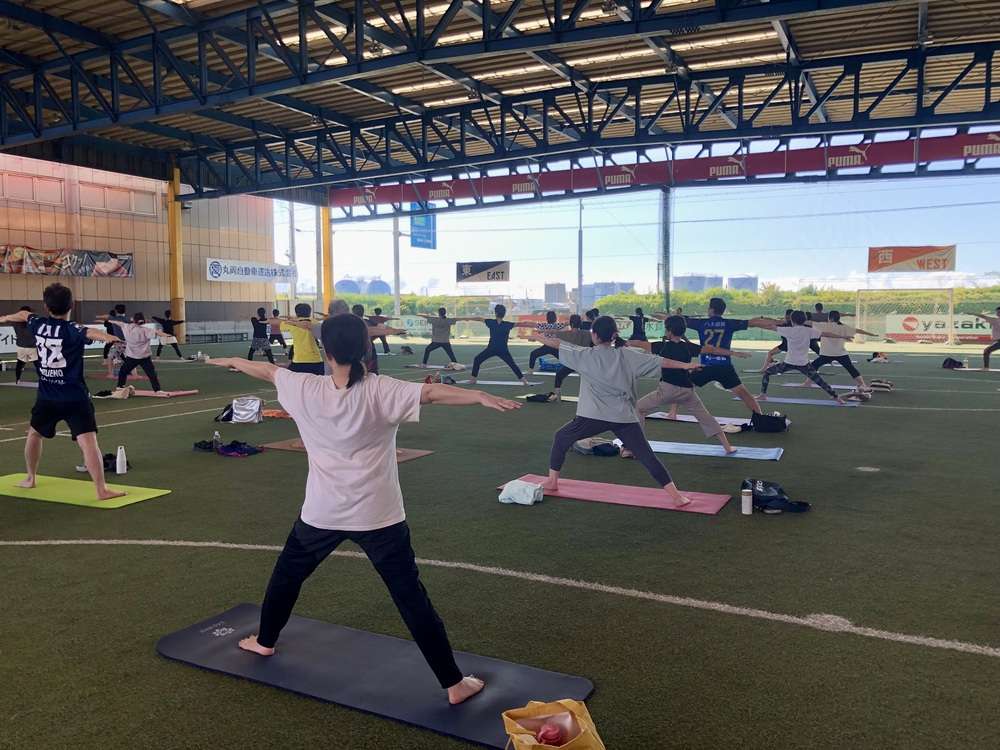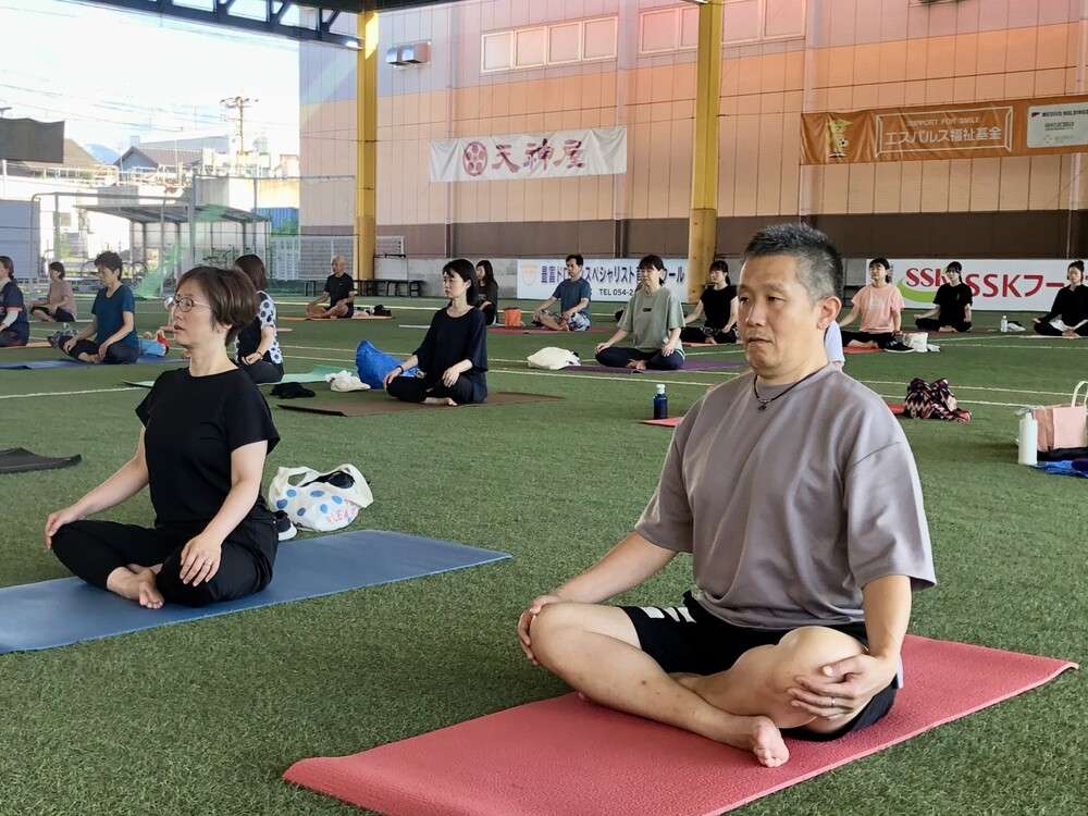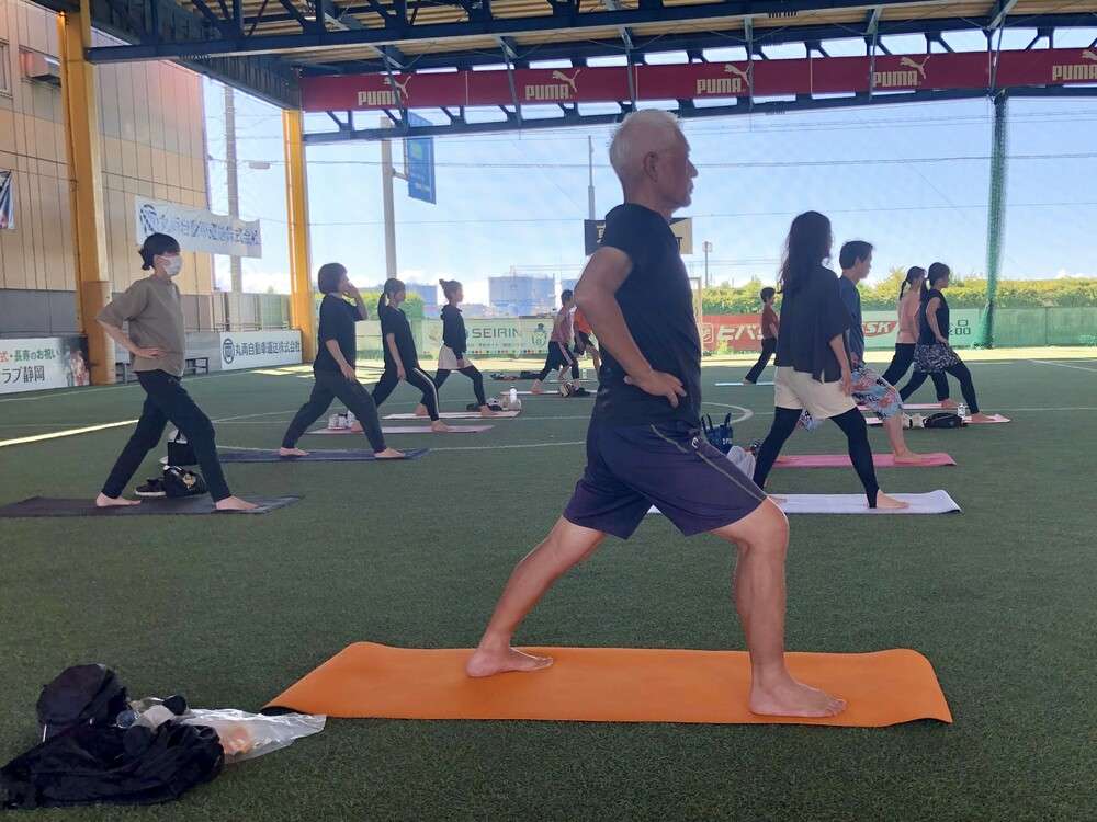 「ヨガコース」を、7月26日(土)7時30分より、エスパルスドリームフィールド清水にて開催し、43名の皆様にご参加いただきました。「ヨガコース」全3回が今回で終了いたしました。