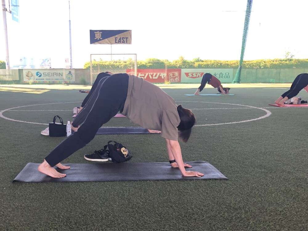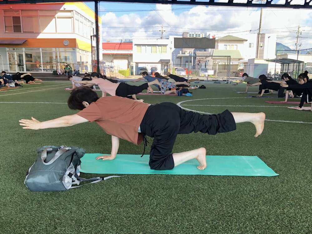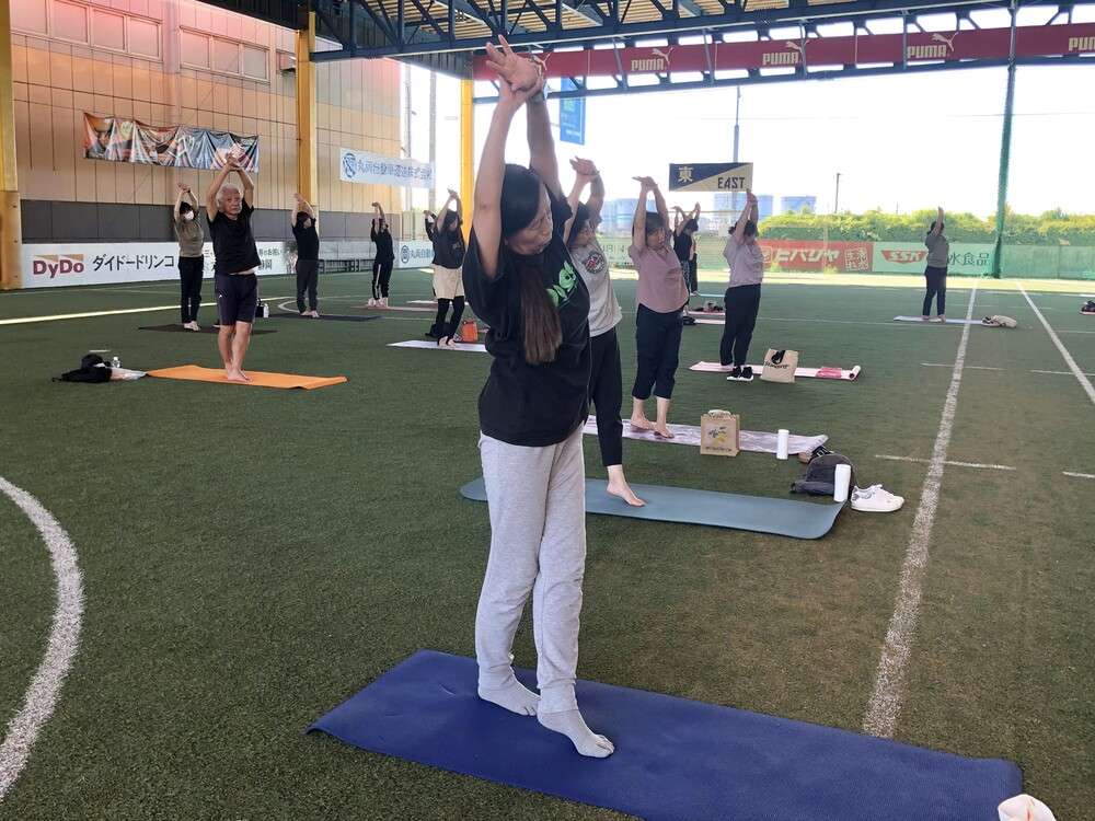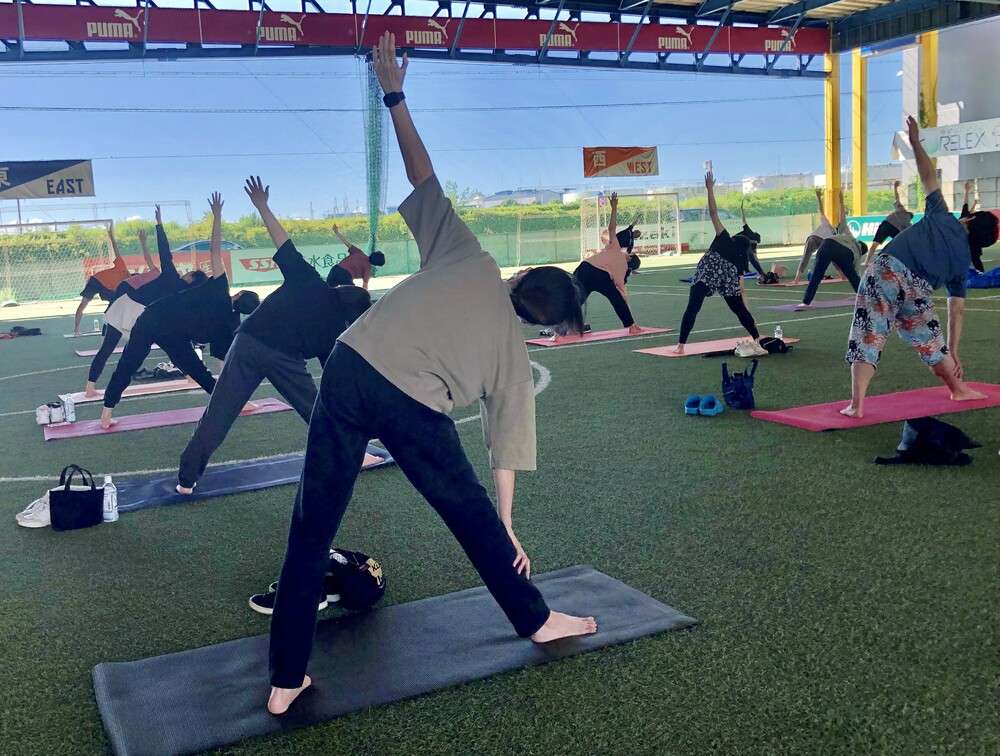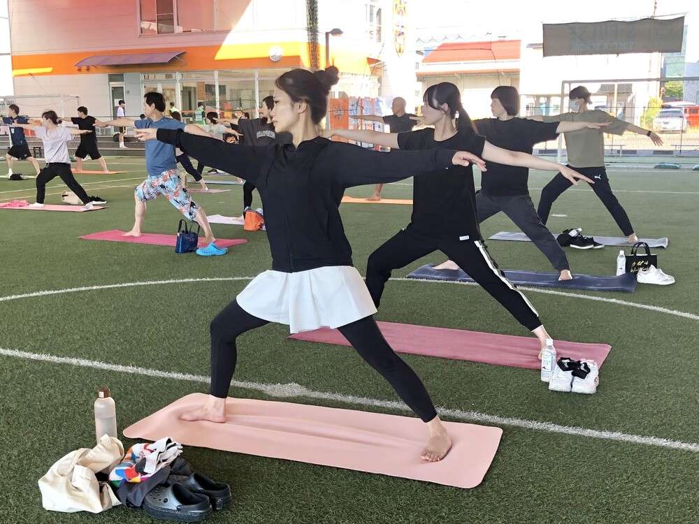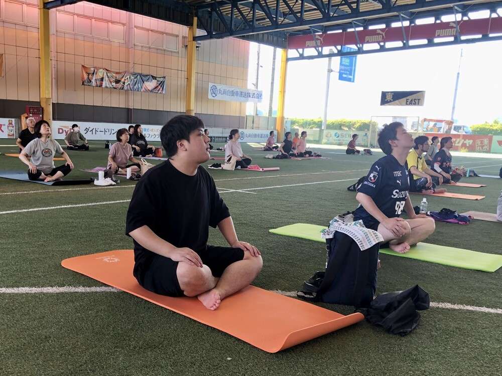 「ヨガコース」を、7月26日(土)7時30分より、エスパルスドリームフィールド清水にて開催し、43名の皆様にご参加いただきました。「ヨガコース」全3回が今回で終了いたしました。