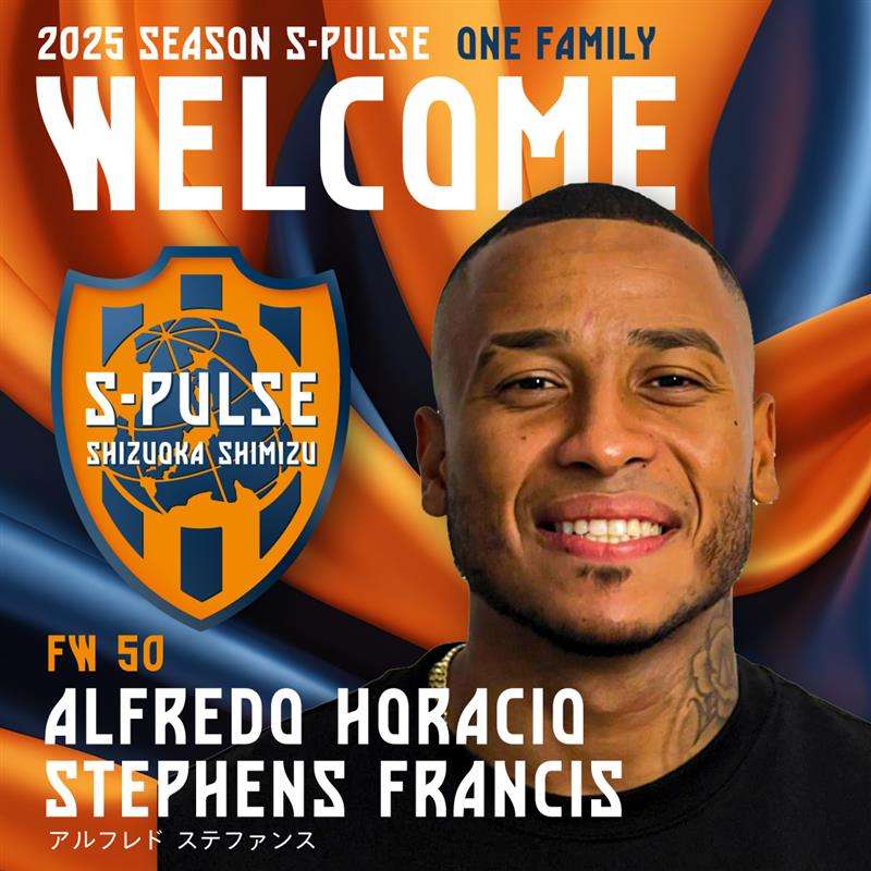 エスパルスファミリーの皆様、このたび、ハポエル・イロニ・キリヤット・シュモナFC(イスラエル)から、アルフレド ステファンス選手が完全移籍にて加入することになりました。パワー、スピード、ジャンプといった高い身体能力を発揮し、マルチプレイヤーとして攻撃を牽引することを期待します。そしてペナルティエリアにおける決定力の高さは間違いなくチームを勝利に導いてくれることでしょう。シーズン途中での加入のため、早くチームそして日本サッカーに慣れるようサポートしていきます。ファン、サポーターの皆様も是非温かく迎えていただき、熱いご声援をよろしくお願いいたします。ステファンス選手、ようこそ清水エスパルスへ、そして共に闘いましょう!!