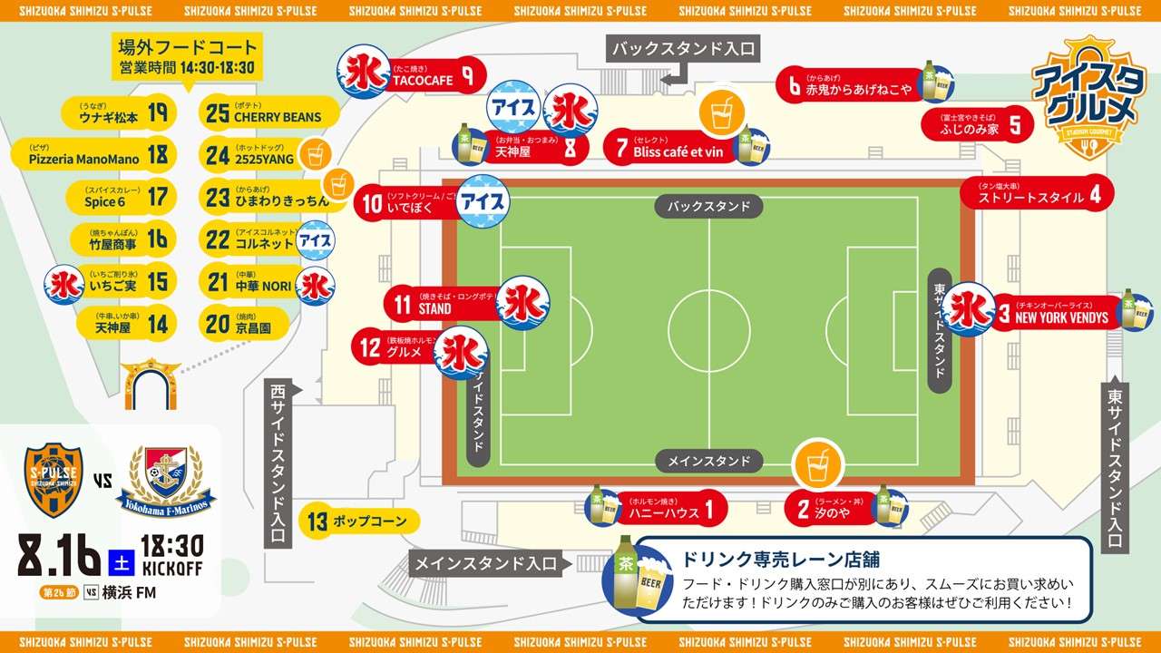 8/16(土)横浜FM戦『アイスタグルメ』のご案内です。皆さまのご来場をお待ちしております!
