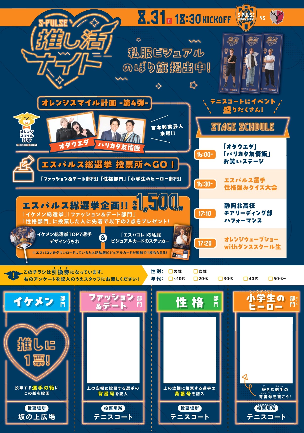 エスパルスでは、8/31(日)鹿島戦の「推し活ナイト」に向けて、エスパルス総選挙を開催しております。