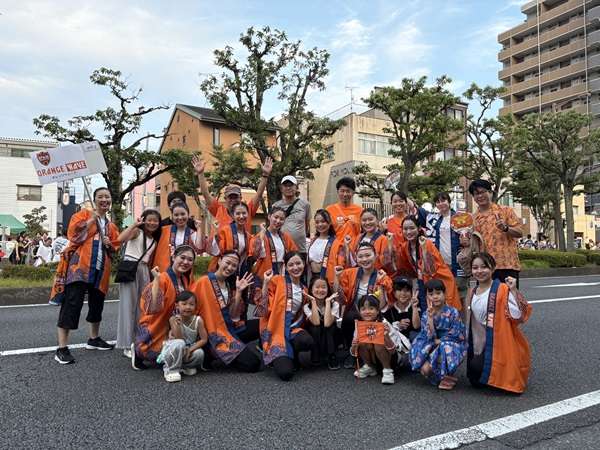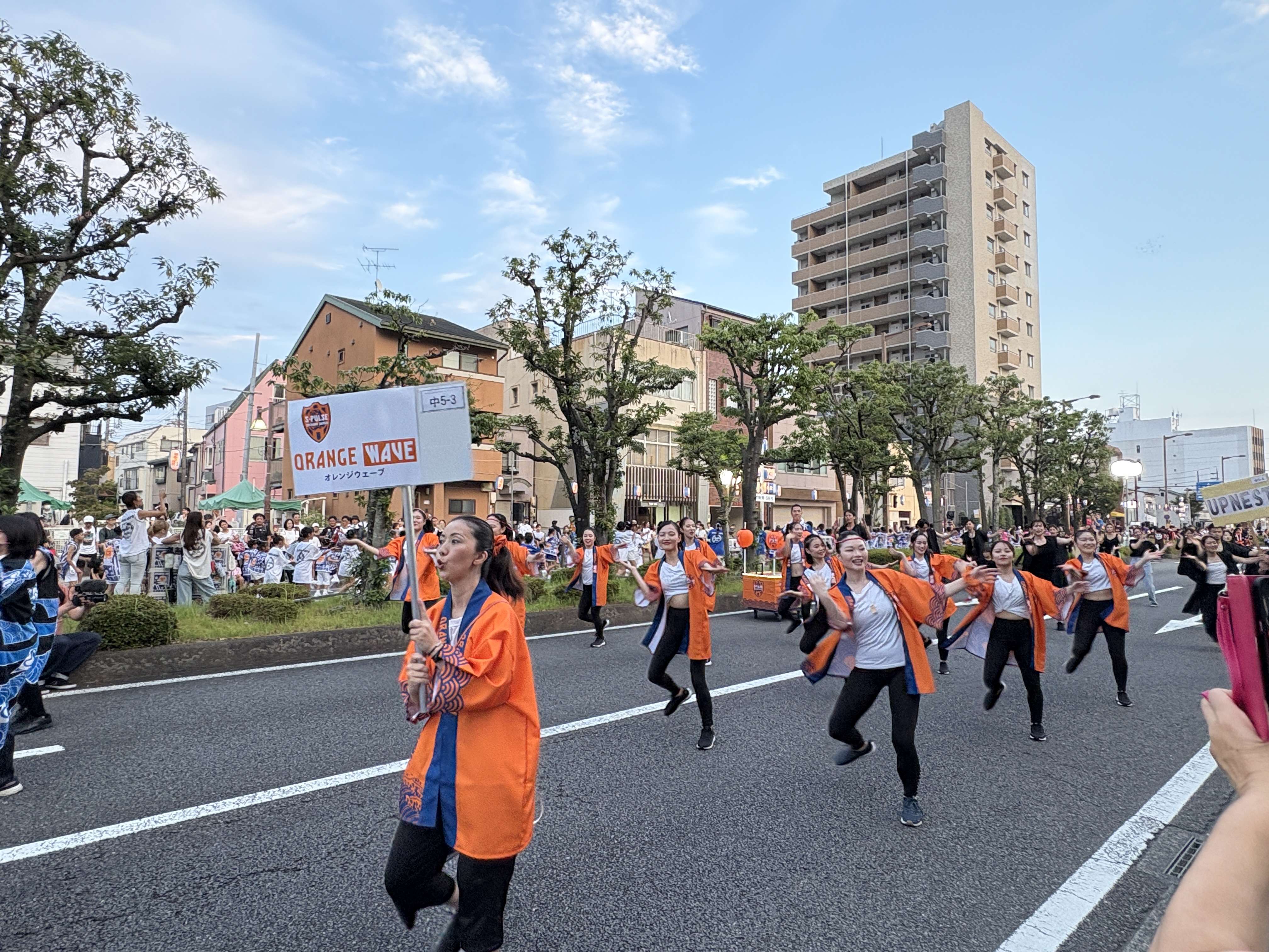 オレンジ色の法被に身を包んだオレンジウェーブメンバーは、総踊りのアナウンスに合わせて、港かっぽれ各種、地踊り(清水おどり・次郎長おどり・港おどり)を元気に踊りました。かっぽれの間奏にラインダンスを組み込むアレンジもあり、オレンジウェーブの華やかでキレのある踊りは多くの方の注目をいただきました。そして他の踊り参加連の皆さんとともに、21時の総踊り終了まで踊り切りました!