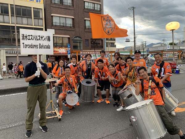 またみなと祭り初日の8月1日(金)にはエスパルスのサンバ隊が音楽パレードに参加し、祭りのオープニングを盛り上げました。