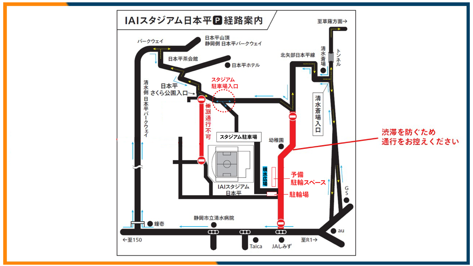 IAIスタジアム日本平入口交差点横駐輪場に停めてください。
