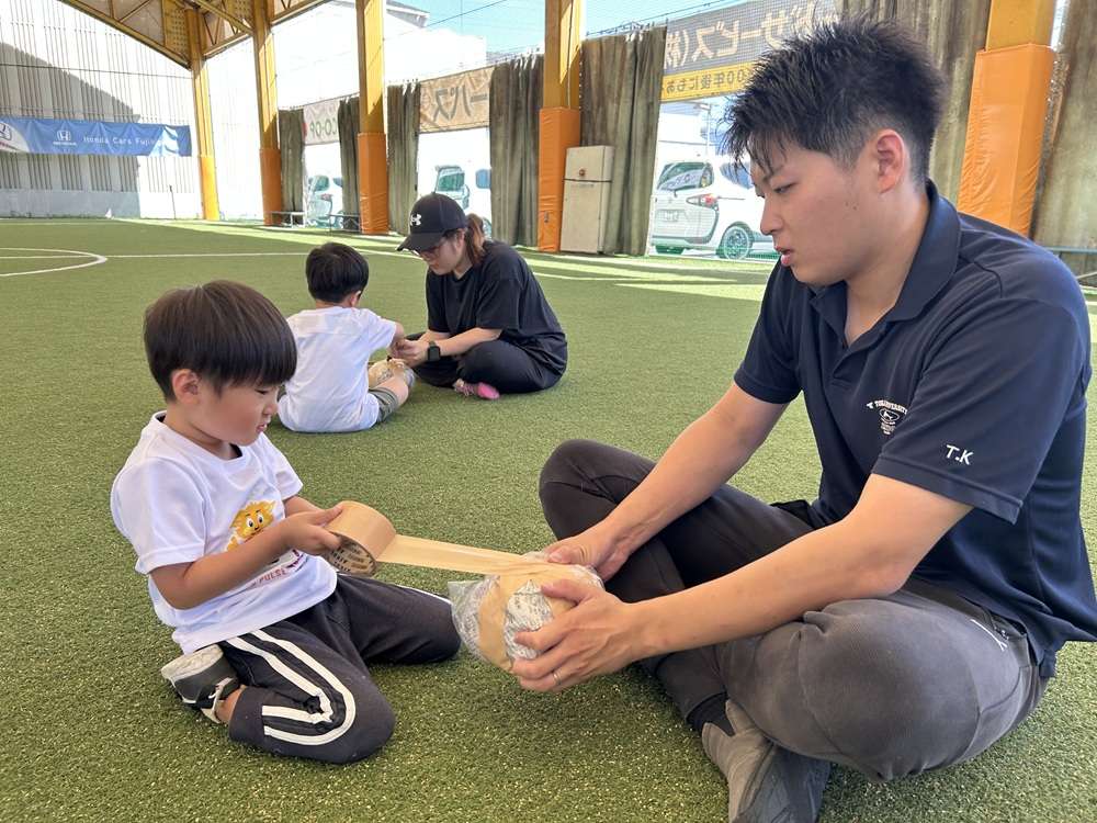 親子で新聞紙を丸めてサッカーボール作りにチャレンジします。手先を使ってモノを作る「工作」は子どもの成長には欠かせない重要な要素の1つとなります。工作を取り入れることで子供たちの好奇心に刺激を与え、集中力を高めます。