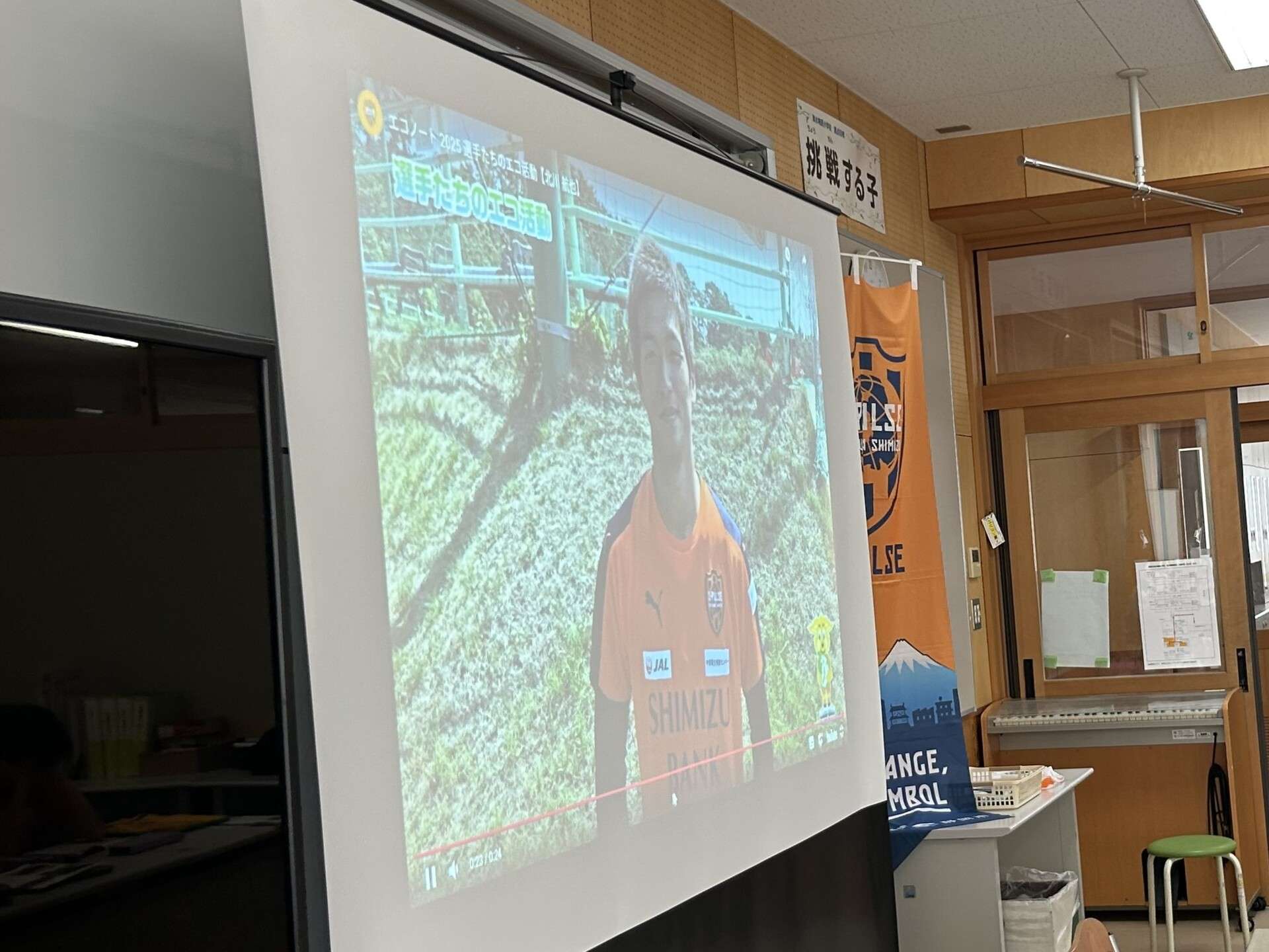 最後に、地球温暖化などの環境問題は身近で起こっており、私たちの生活にも影響が出ていることから「じぶんごと」として考えて行動することが大切で、そのためにもエコノートを活用し環境にやさしい行動を仲間や家族に広めていってほしいと、静岡市とエスパルスよりメッセージを伝え授業を終わりました。
