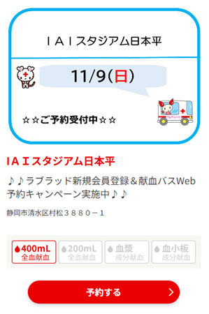 ※お申込内の献血会場は、「IAIスタジアム日本平」をご選択ください。