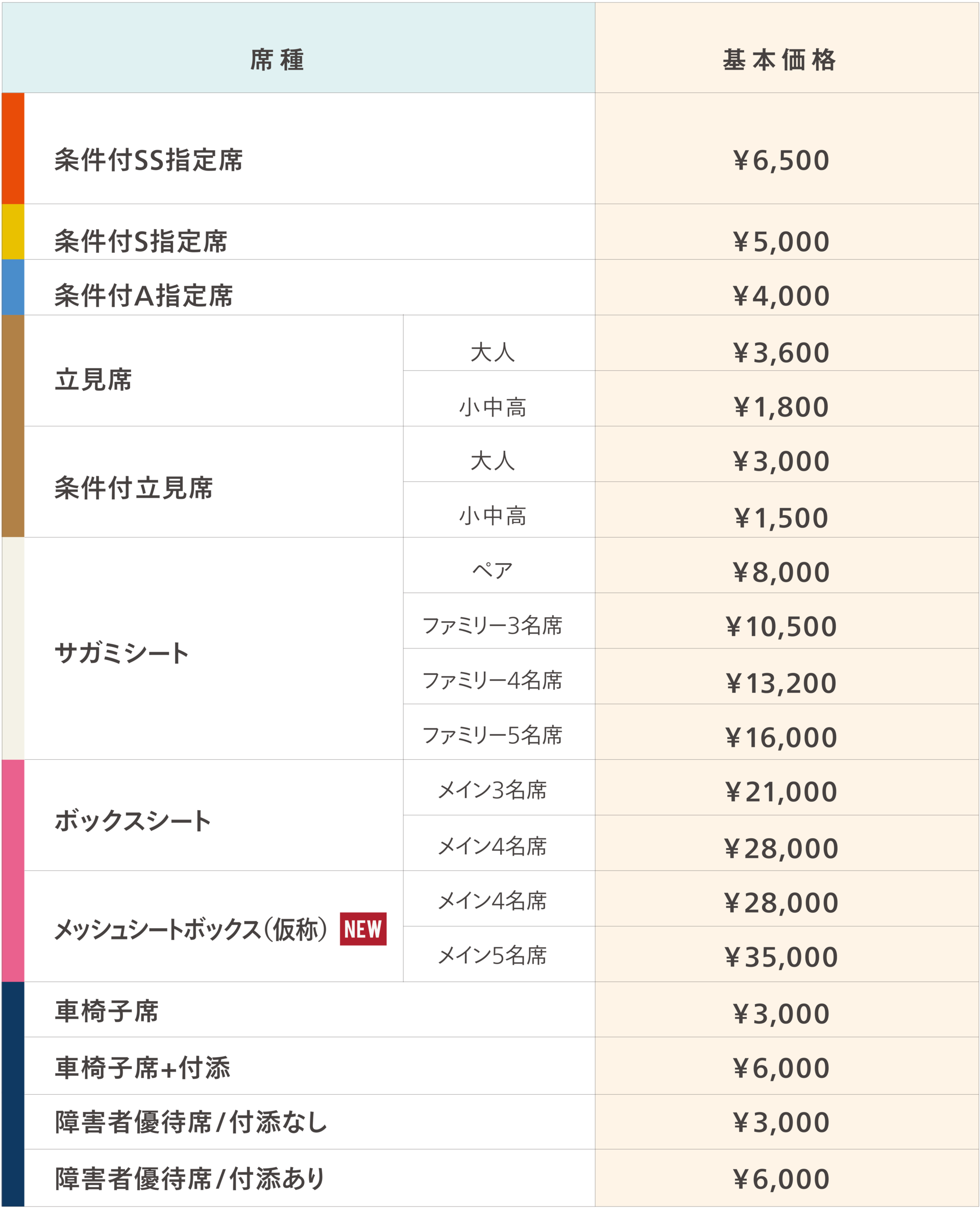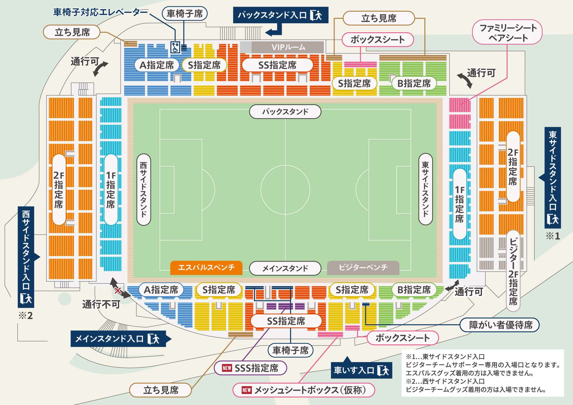 ※SSS指定席とメッシュシートボックス(仮称)につきましては、パックチケット・シーズンシートの販売対象外席種となります。