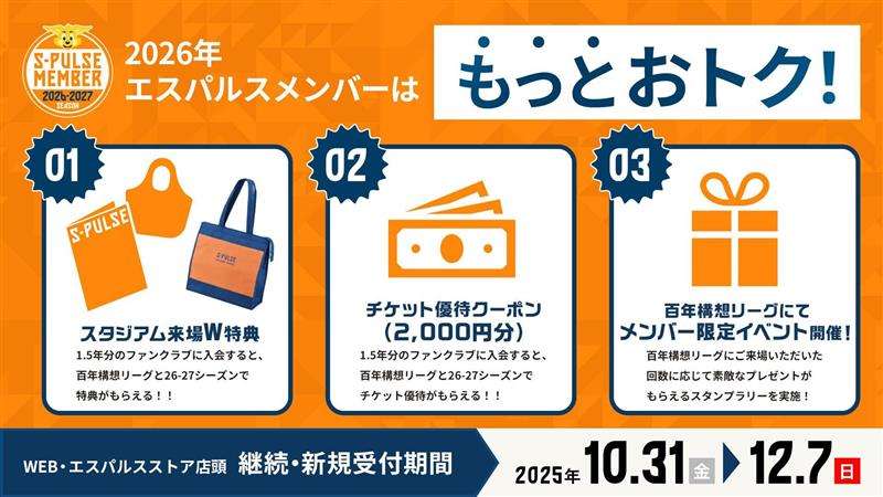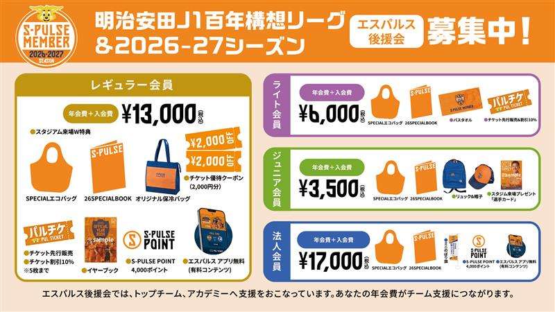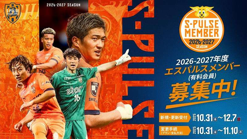 2026–2027シーズンのエスパルスメンバー(後援会)の 継続・プラン/支払変更・新規入会受付につきまして、お知らせいたします。