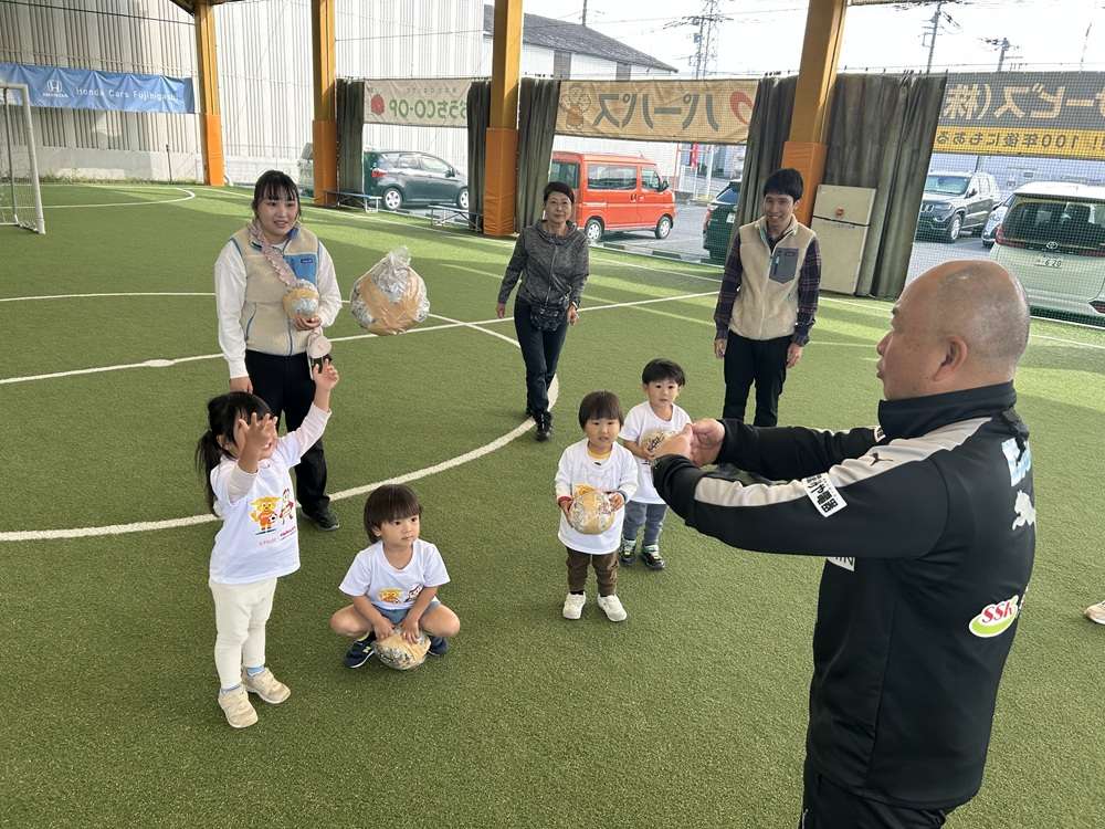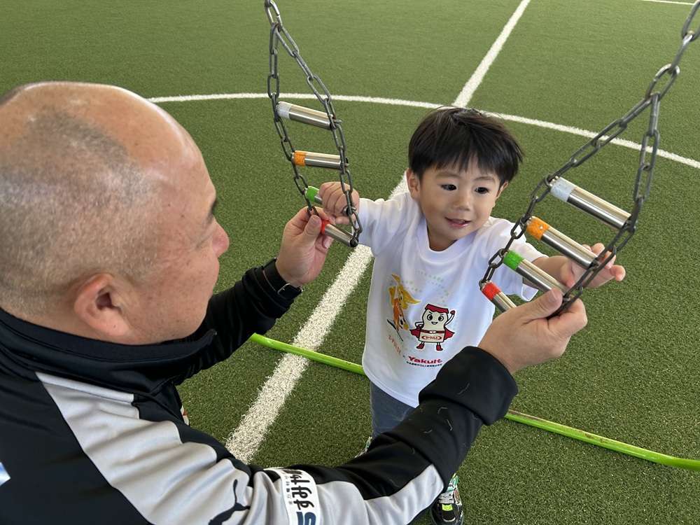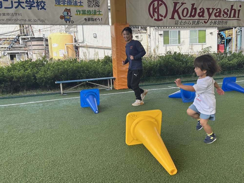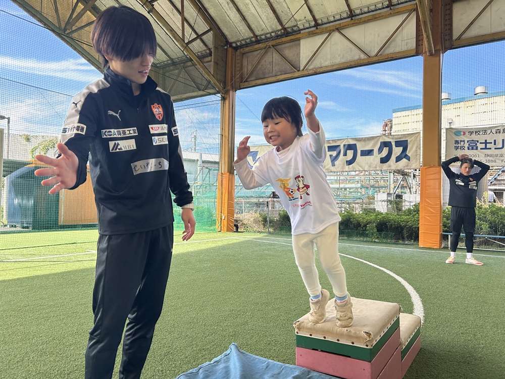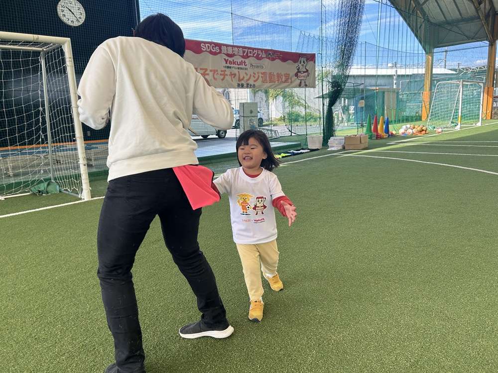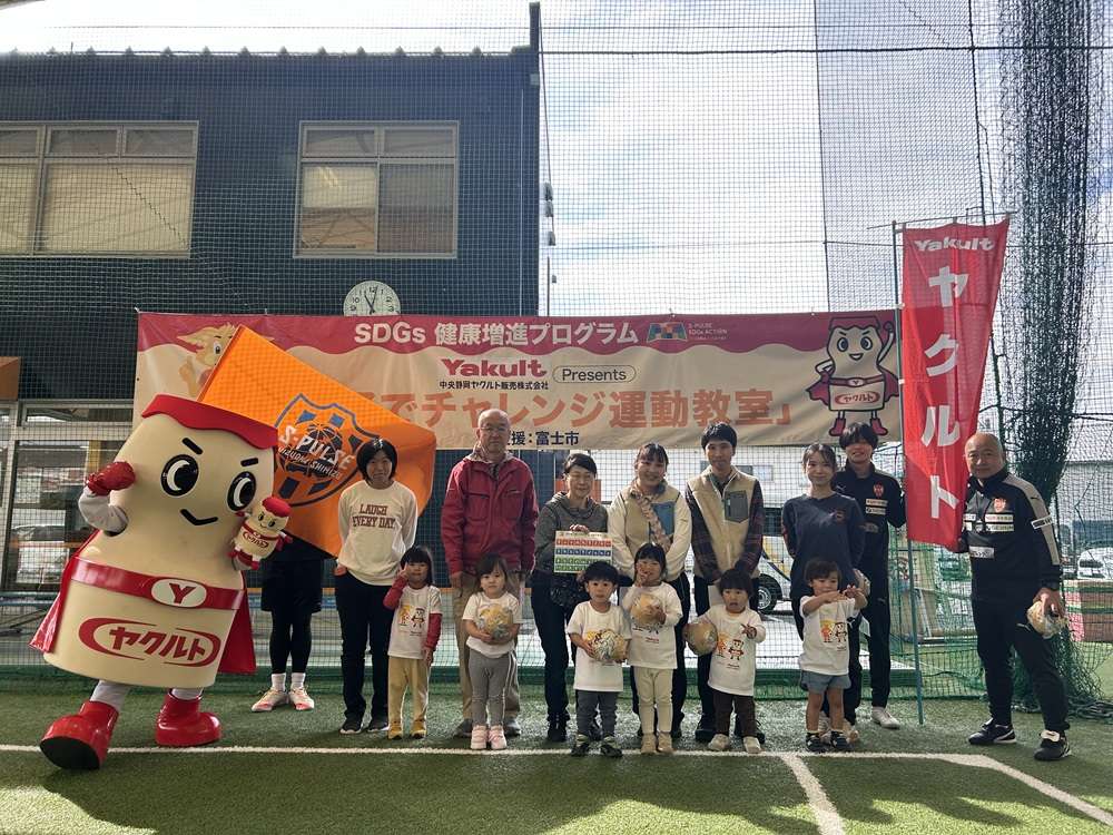 エスパルスは、SDGs健康増進プログラムの一環として、中央静岡ヤクルト販売株式会社様のご支援のもと、2歳~4歳児を対象とした「親子でチャレンジ運動教室」を2025年10月29日にSDF富士にて開催し、6組の親子の皆さんに参加いただきました。