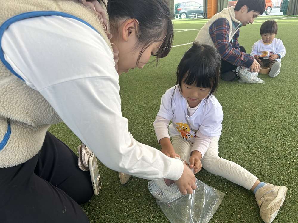 親子で新聞紙を丸めてサッカーボール作りにチャレンジします。手先を使ってモノを作る「工作」は子どもの成長には欠かせない重要な要素の1つとなります。工作を取り入れることで子供たちの好奇心に刺激を与え、集中力を高めます。