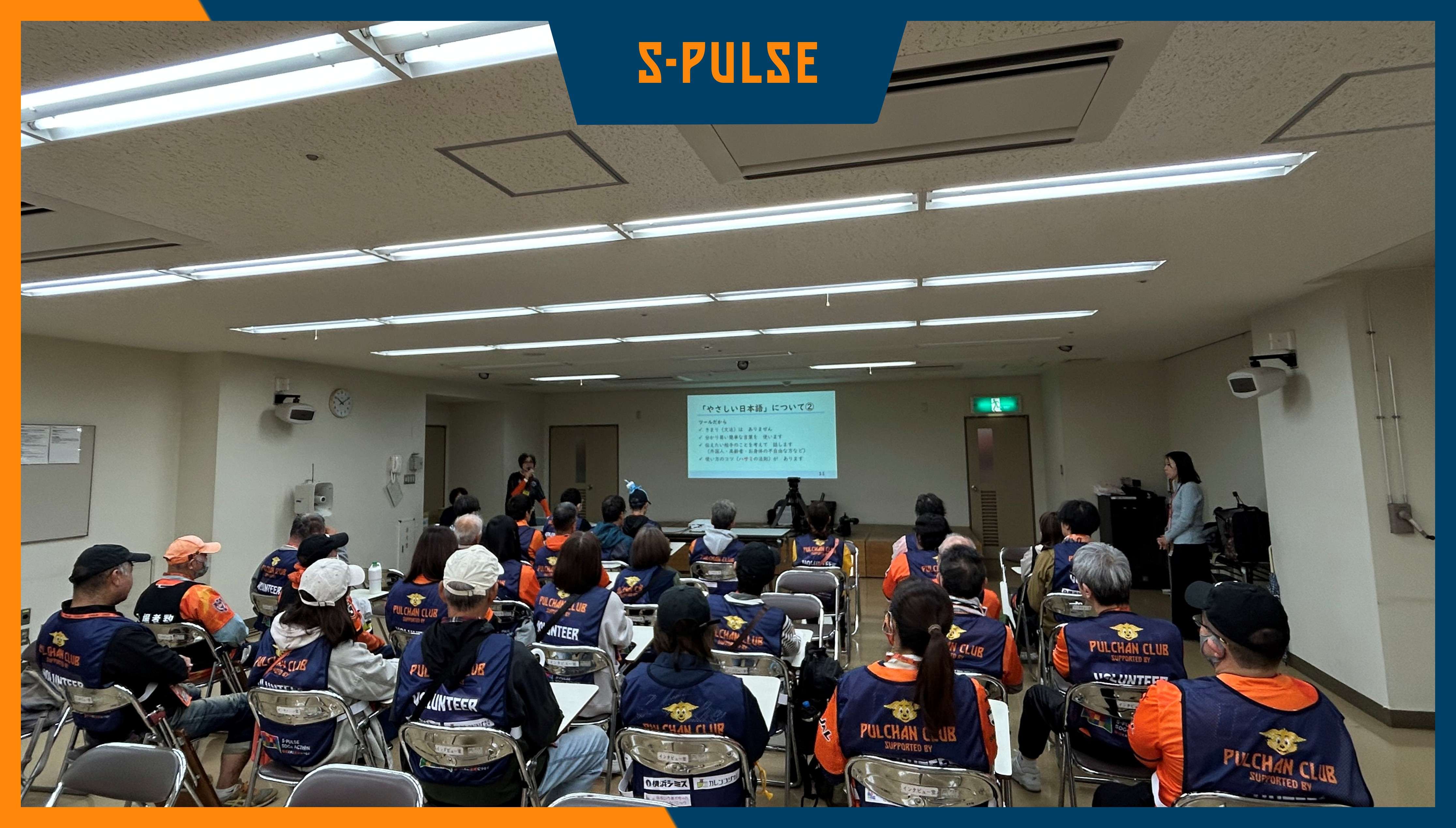エスパルスは静岡市国際交流課と連携して、多文化共生推進に取り組んでいます。本連携の一環で、誰もが住みやすいまちの実現、またスタジアムおもてなしプロジェクト推進のため、スタジアムボランティア パルちゃんクラブを対象に『やさしい日本語講座』を実施しました。