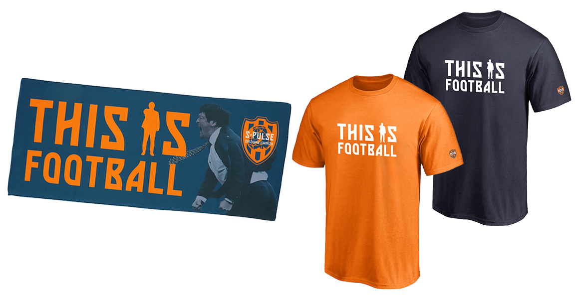 水戸ホーリーホック監督時代から秋葉忠宏監督語録として認知されている[THIS IS FOOTBALL]の新しいグッズが登場!タオルには魂の雄叫びをあげる秋葉監督をデザイン。またTシャツとタオルどちらにも秋葉監督のシルエットをあしらいました。「THIS IS FOOTBALL」グッズでエスパルスと一丸となって戦い抜きましょう!