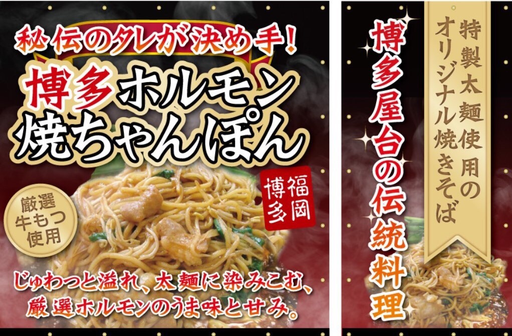 九州のたまり醤油とモツエキスを合わせ、コクのあるソースで仕上げた焼きそばです。匂いから病みつきになる…!