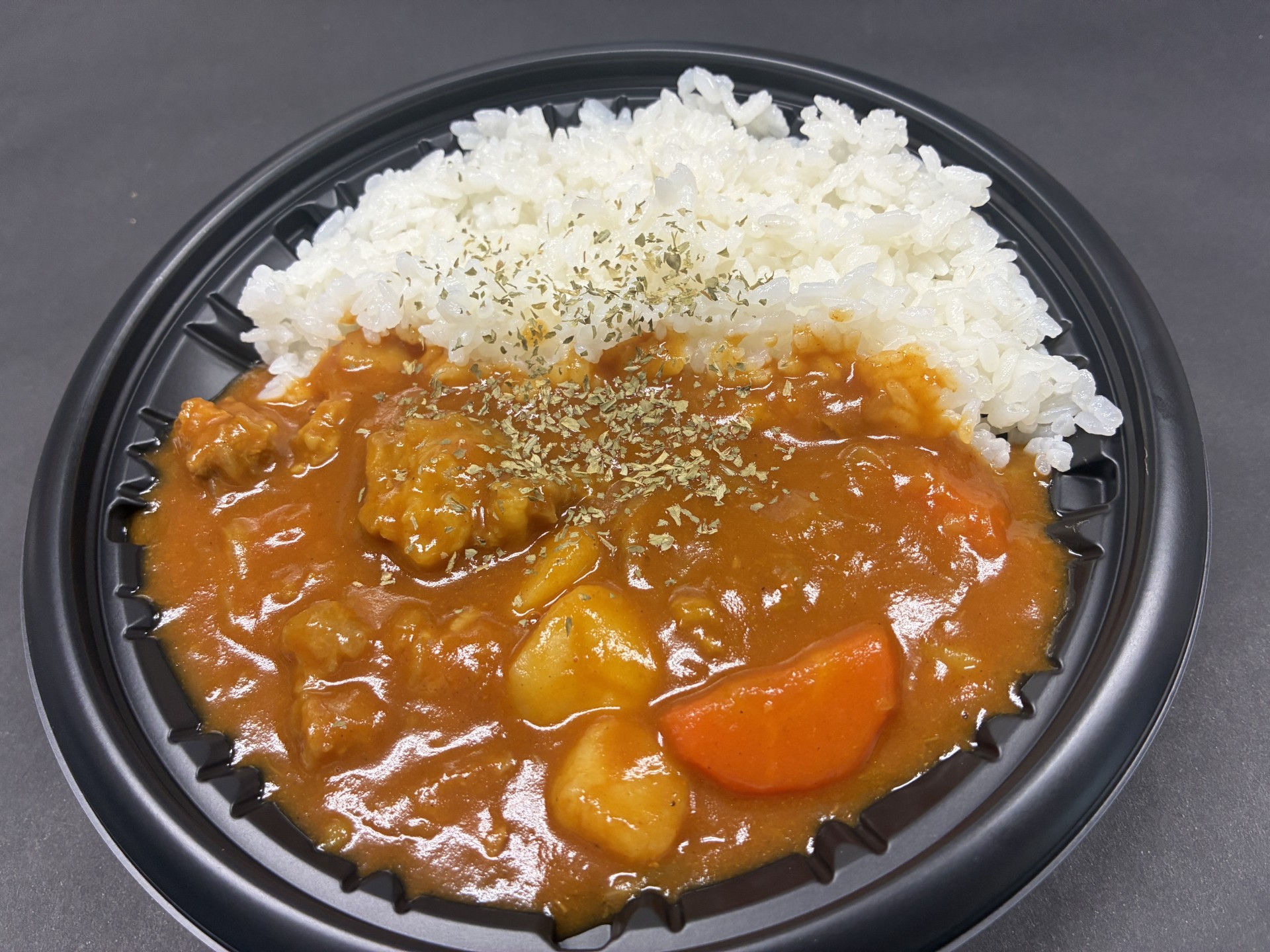 人参、じゃがいも、牛すじがゴロっと入った辛さ控えめの味付けお子様も召し上がれます