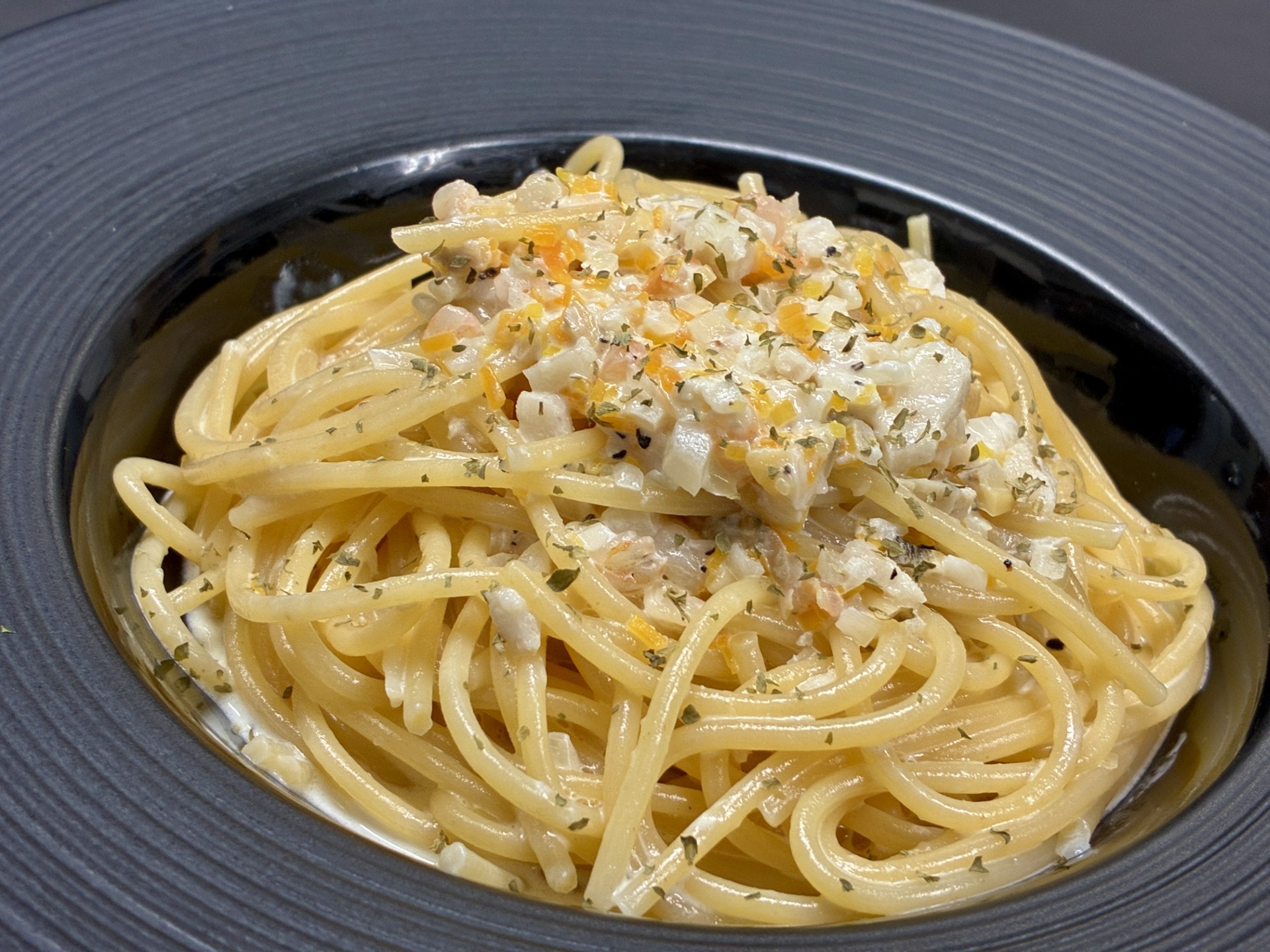 エビ・タコ・ホタテ・白身魚が入った季節に合うクリームパスタです