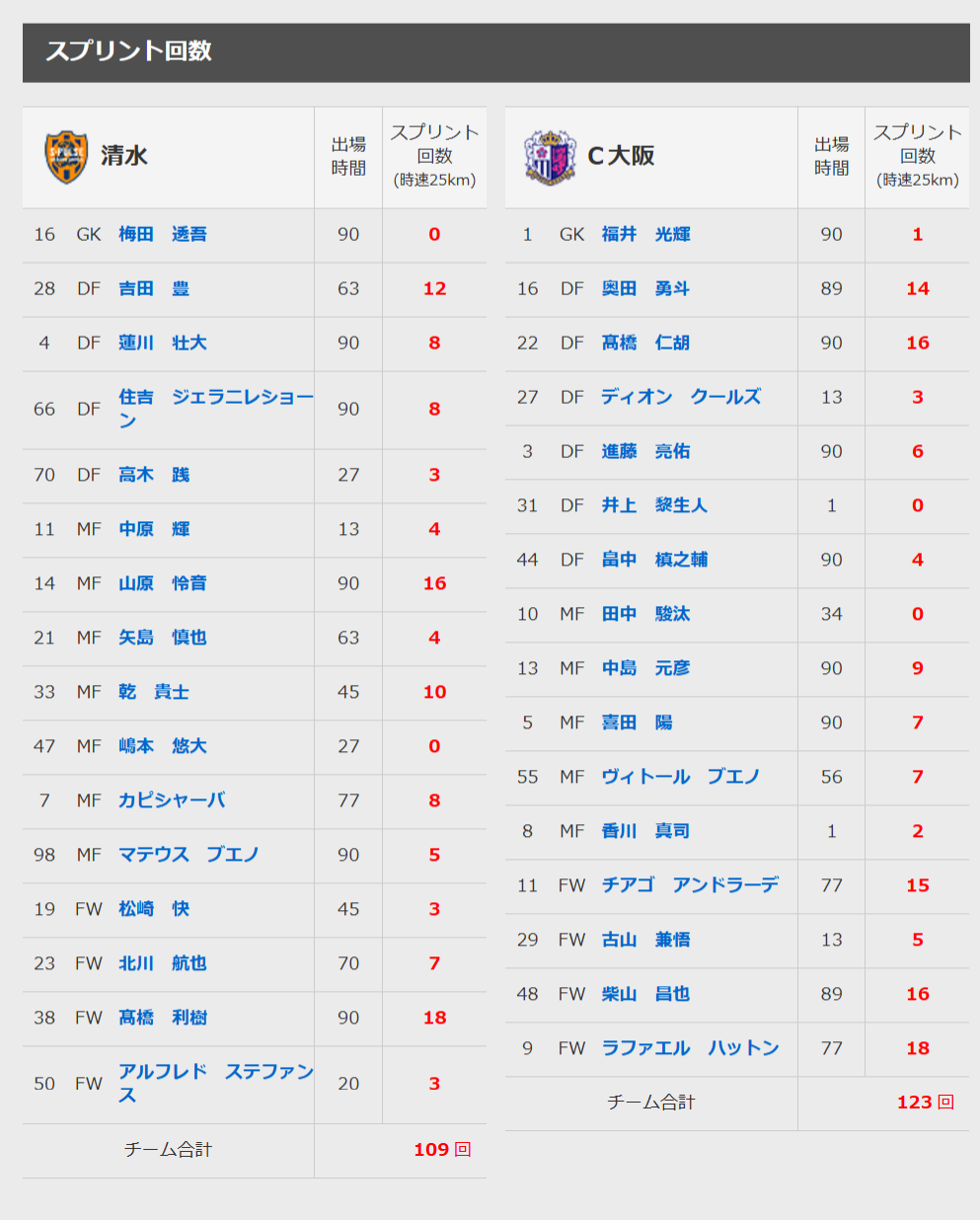 【11/9 明治安田J1リーグ 第36節 vs C大阪】トラッキングデータ