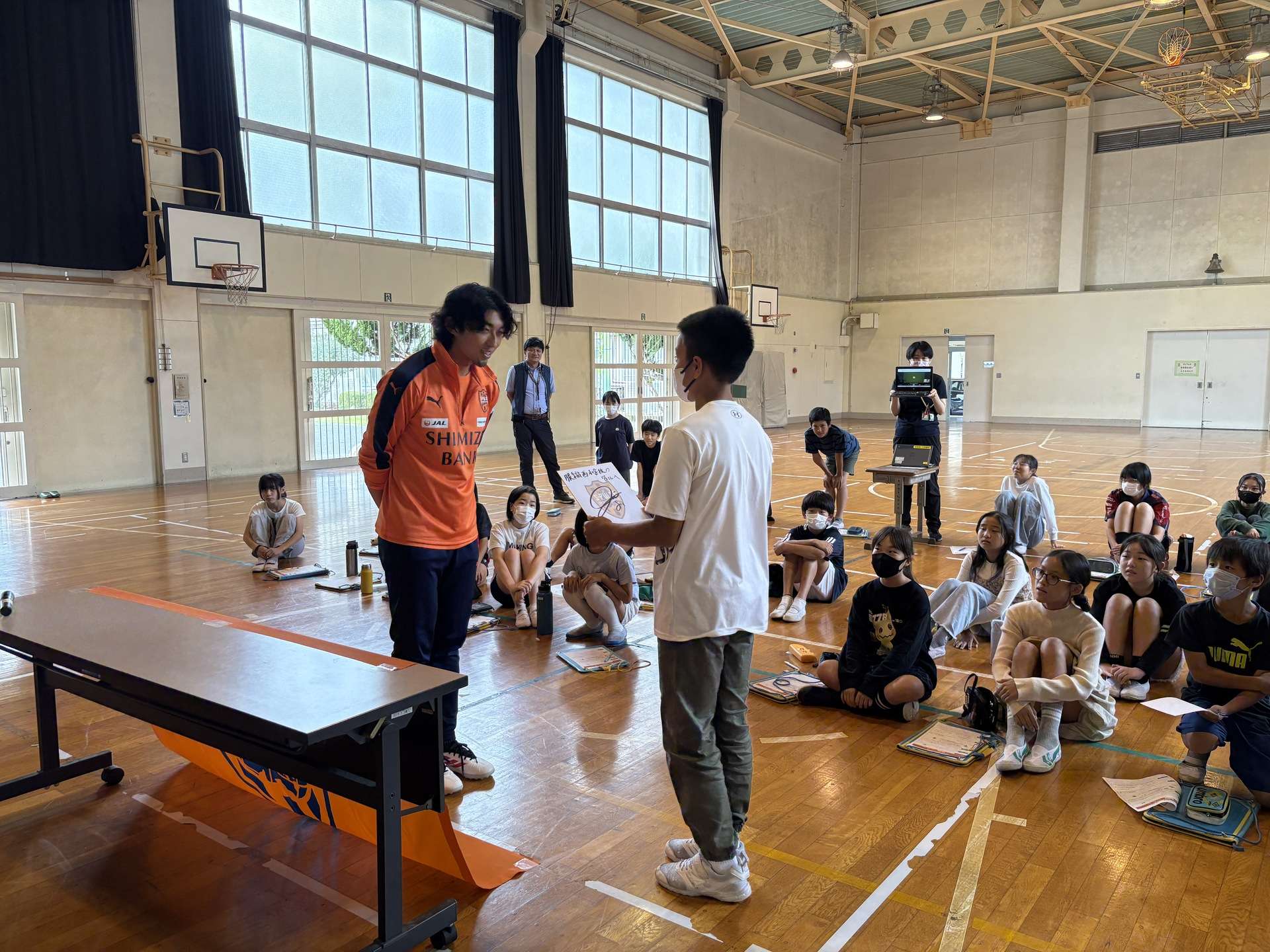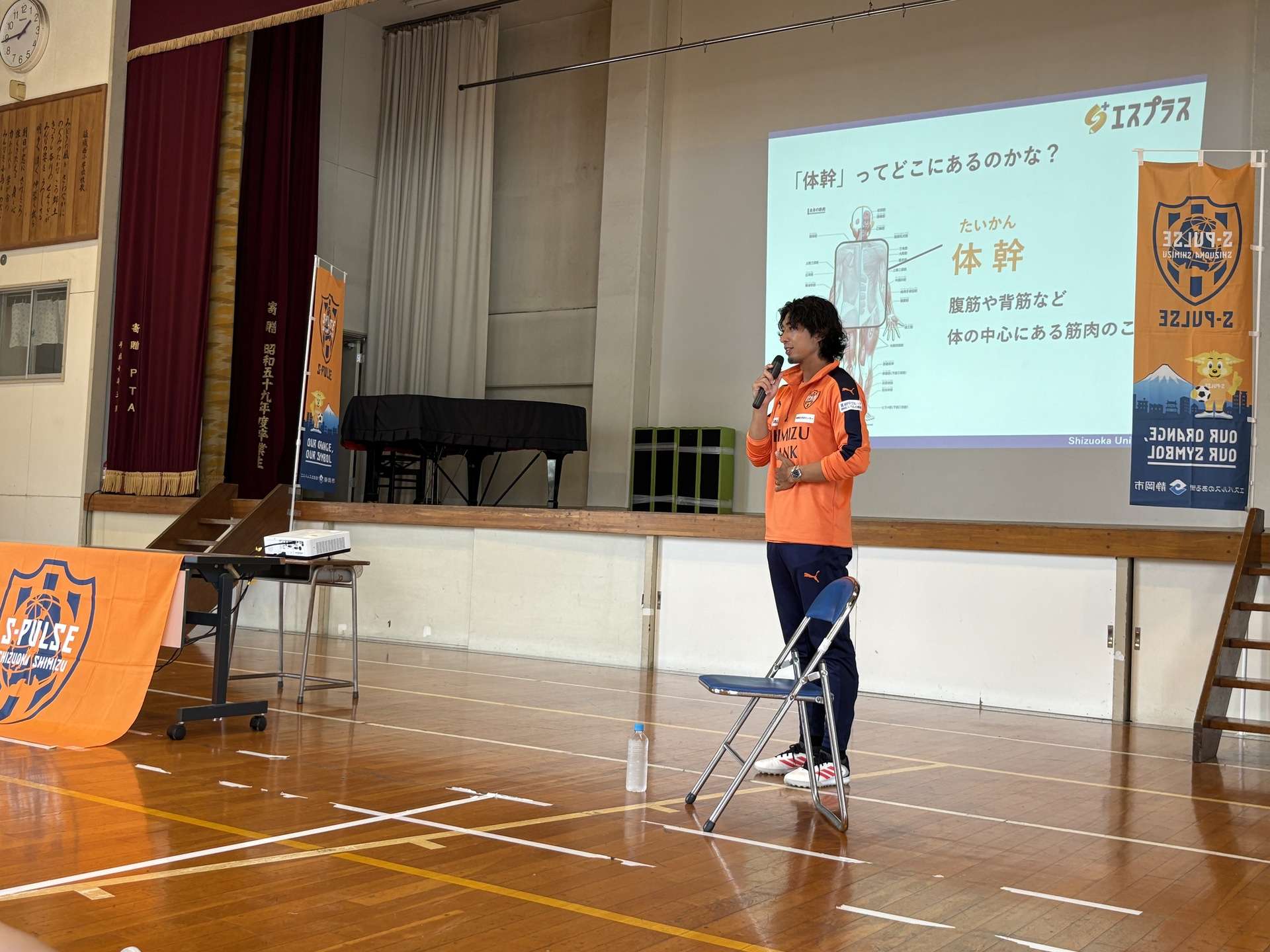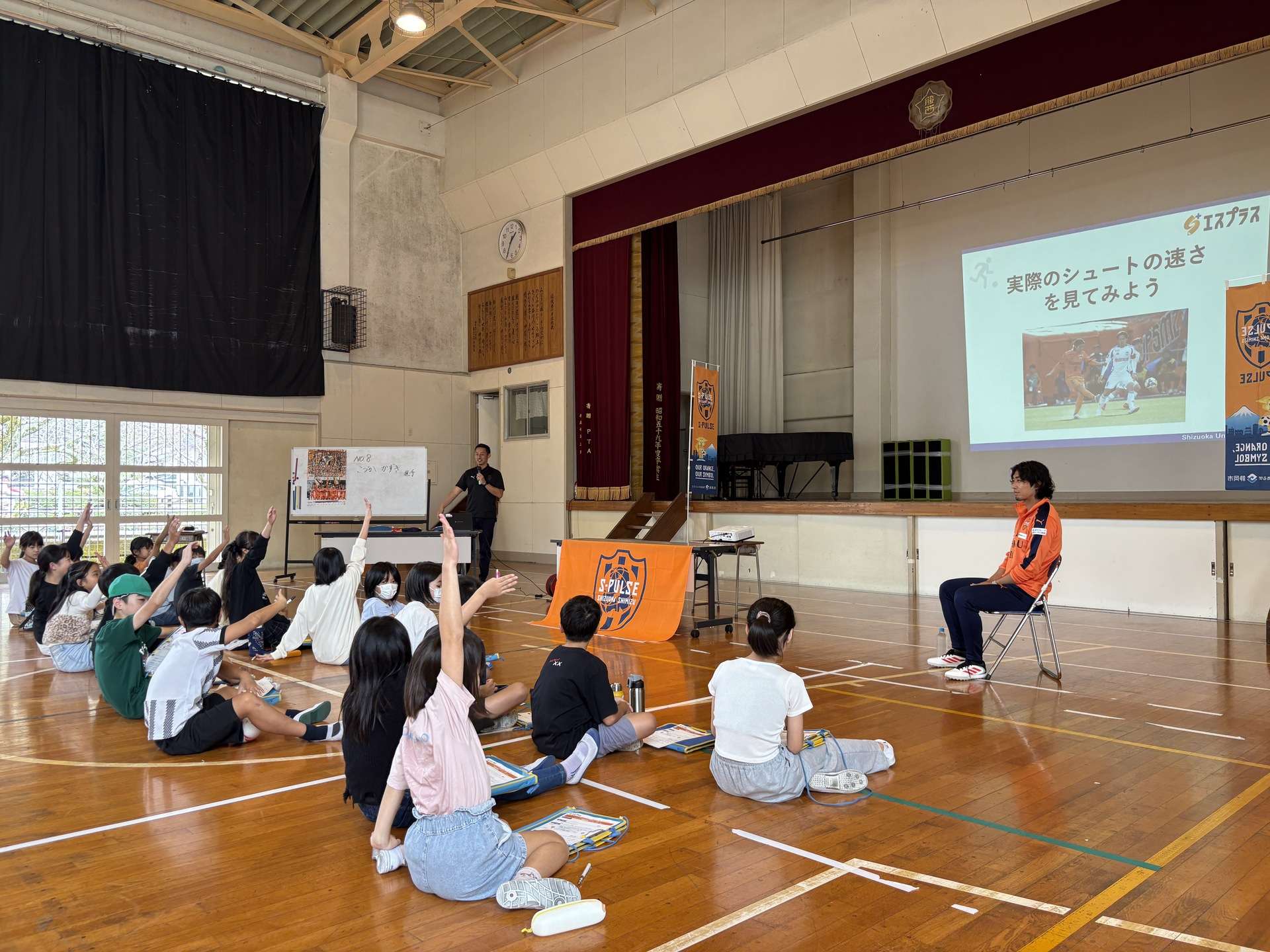 『エスプラス』は、エスパルスの選手・スタッフ・クラブ職員がゲスト講師となり、静岡市内の小中学校を訪問し、児童・生徒と共に学ぶホームタウン次世代育成プロジェクト。