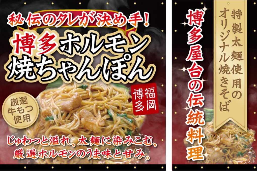 九州のたまり醤油とモツエキスを合わせ、コクのあるソースで仕上げた焼きそばです。匂いから病みつきになる…!
