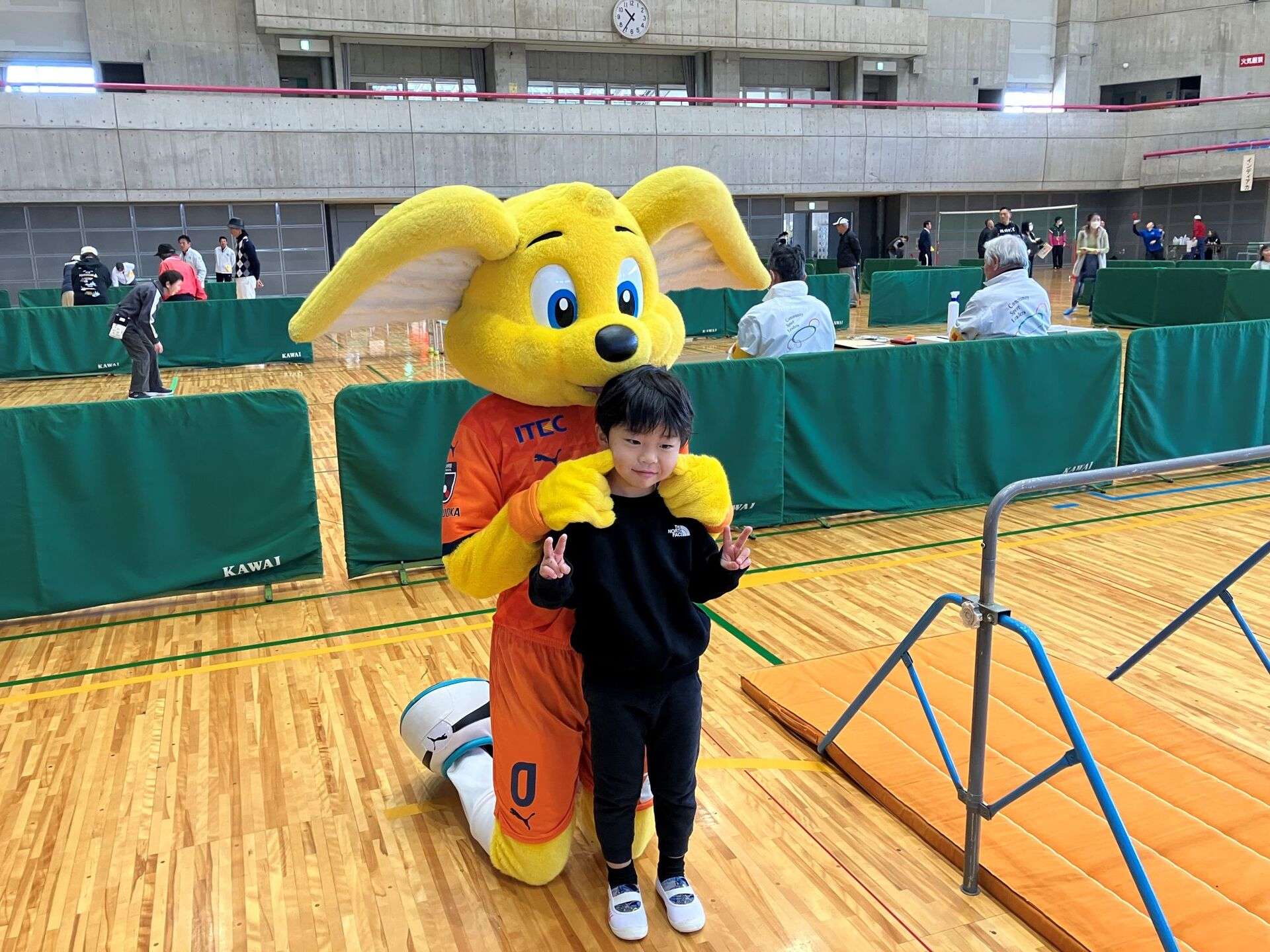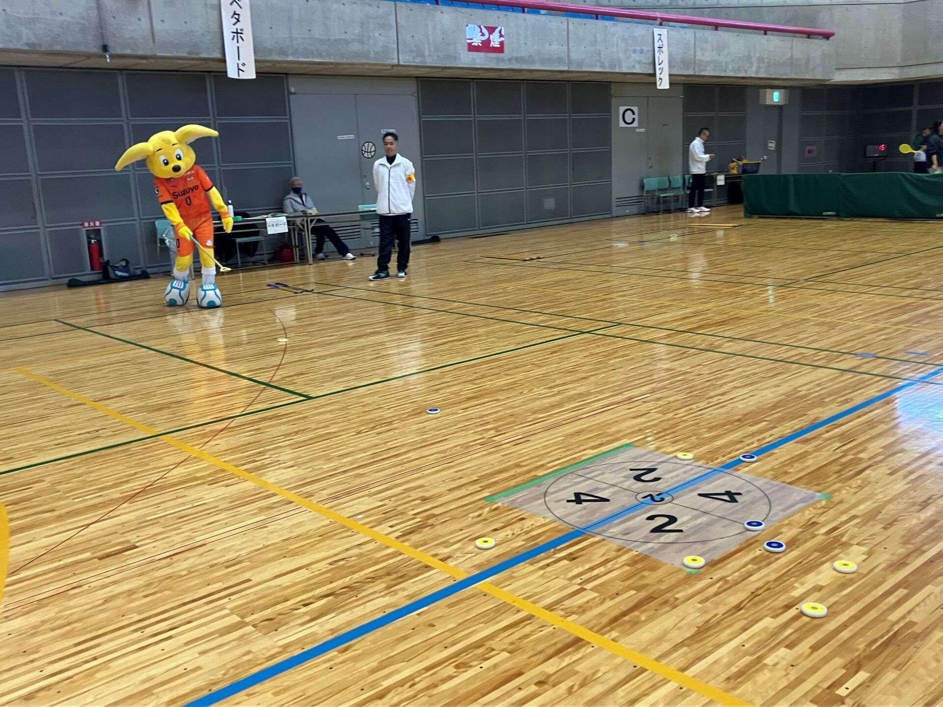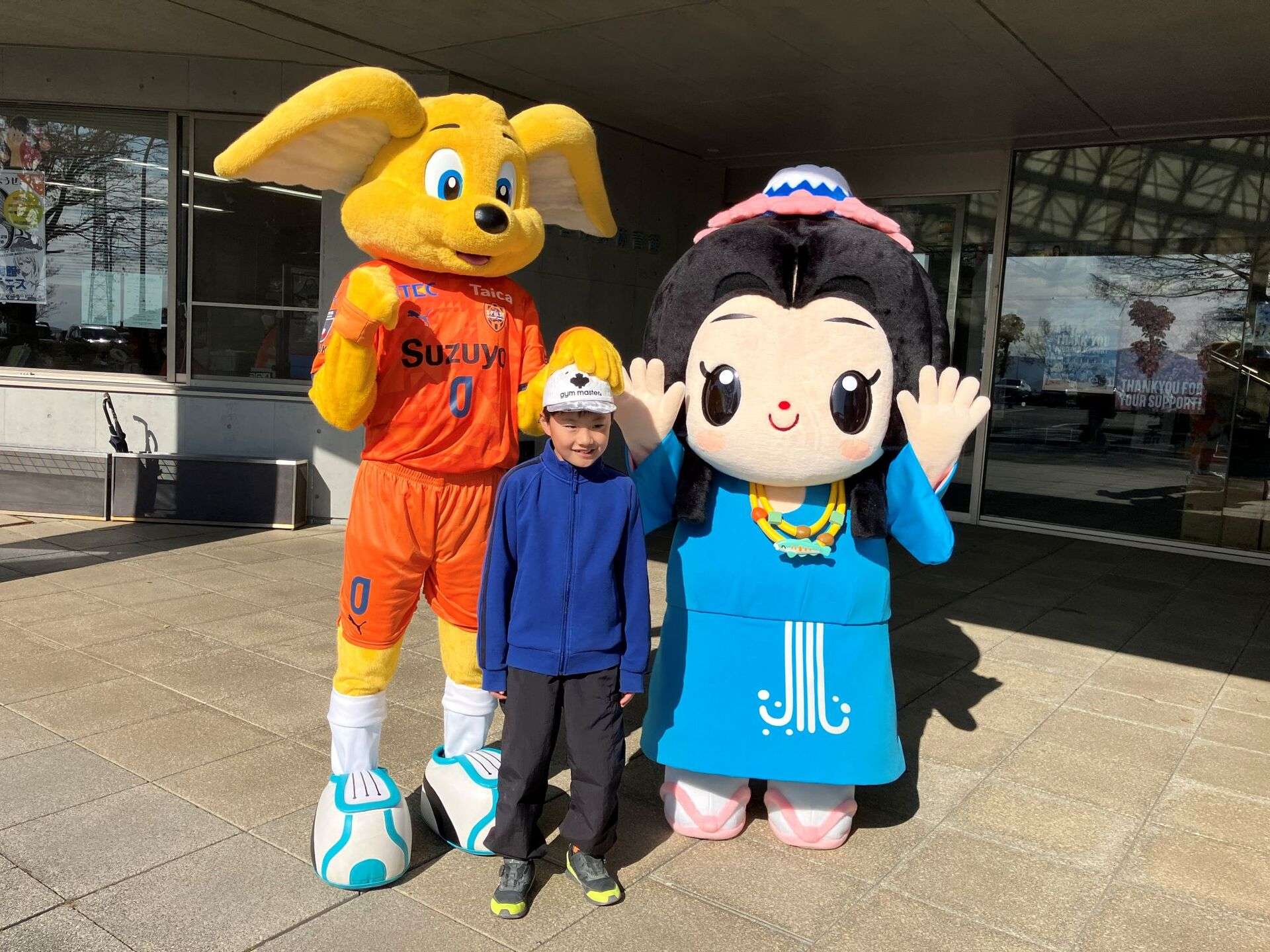 富士宮市民体育館には、富士宮市出身の吉田豊選手や澤登正朗ユース監督のサイン色紙などのエスパルスグッズも展示されています。「今、SDF富士のエスパルススクールで、すずコーチに教わってきました!」「サッカーがうまくなれるよう頑張ります!」といった子どもたちの声も聞けて、パルちゃんは参加者の皆さんと写真撮影をしたり、一緒にスポーツを体験したりして、ふれあいました。