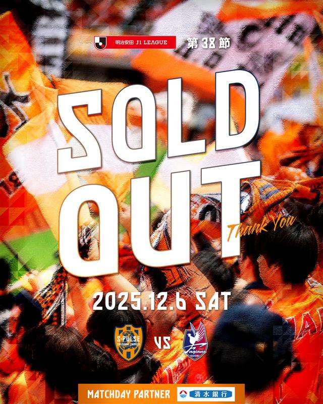 12月6日(土)に開催されるホームゲームのチケットが完売しましたので、お知らせいたします。これにより、当日券の販売はいたしませんので、併せてご案内いたします。