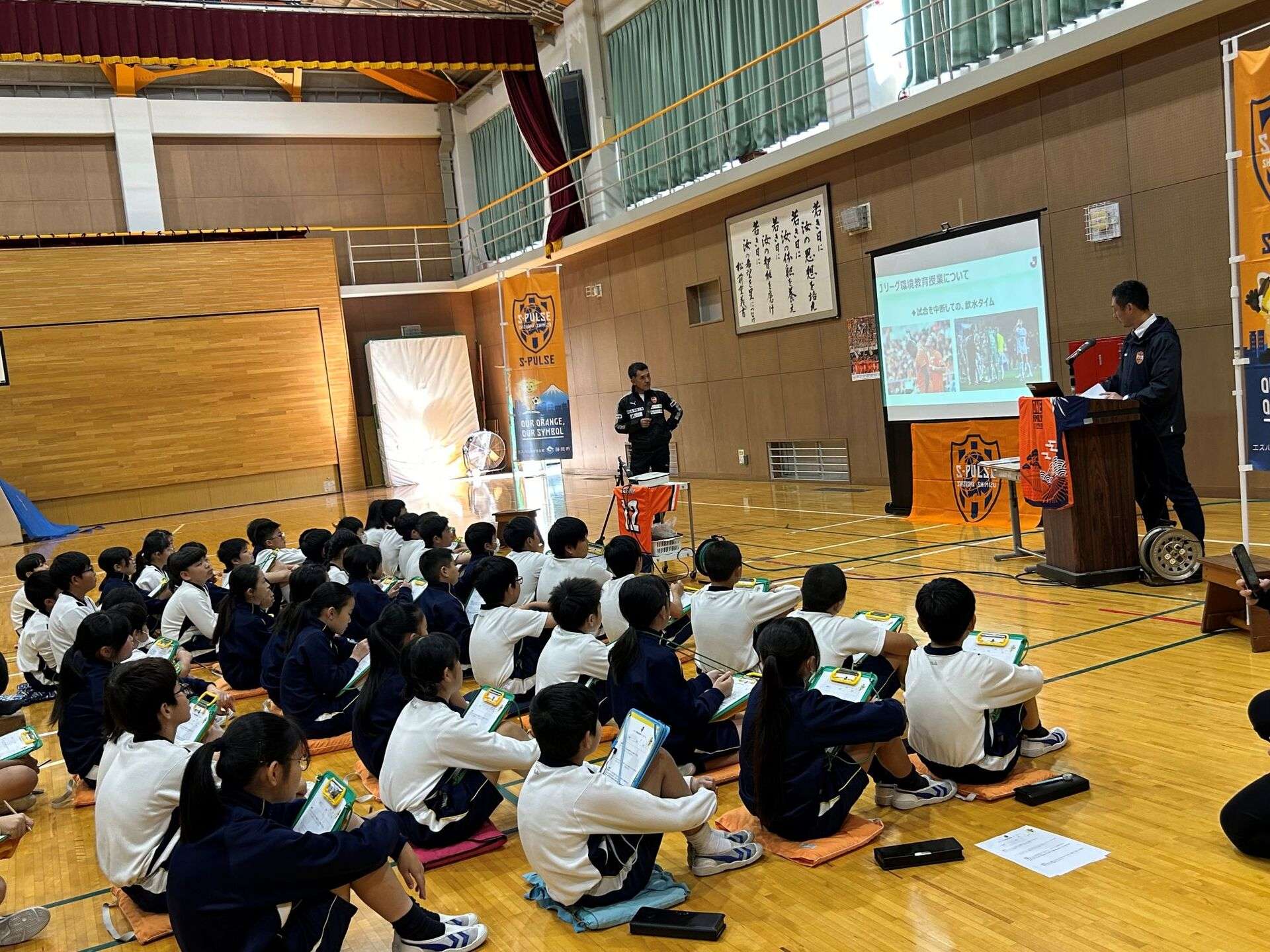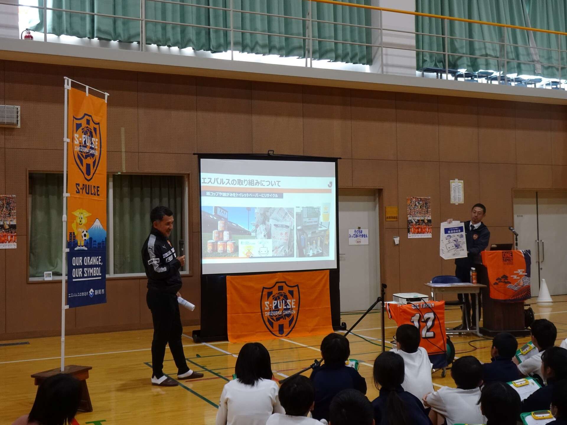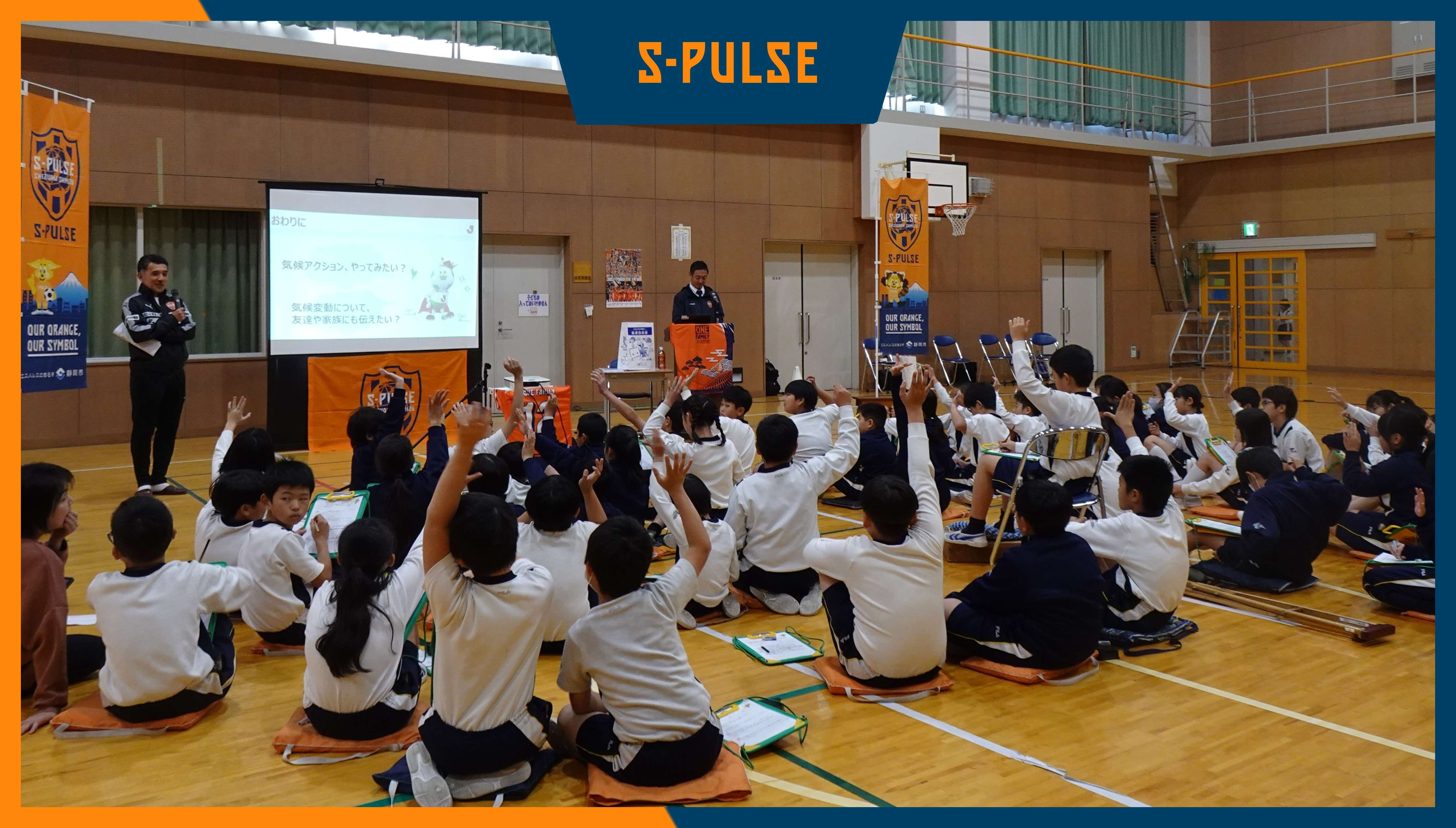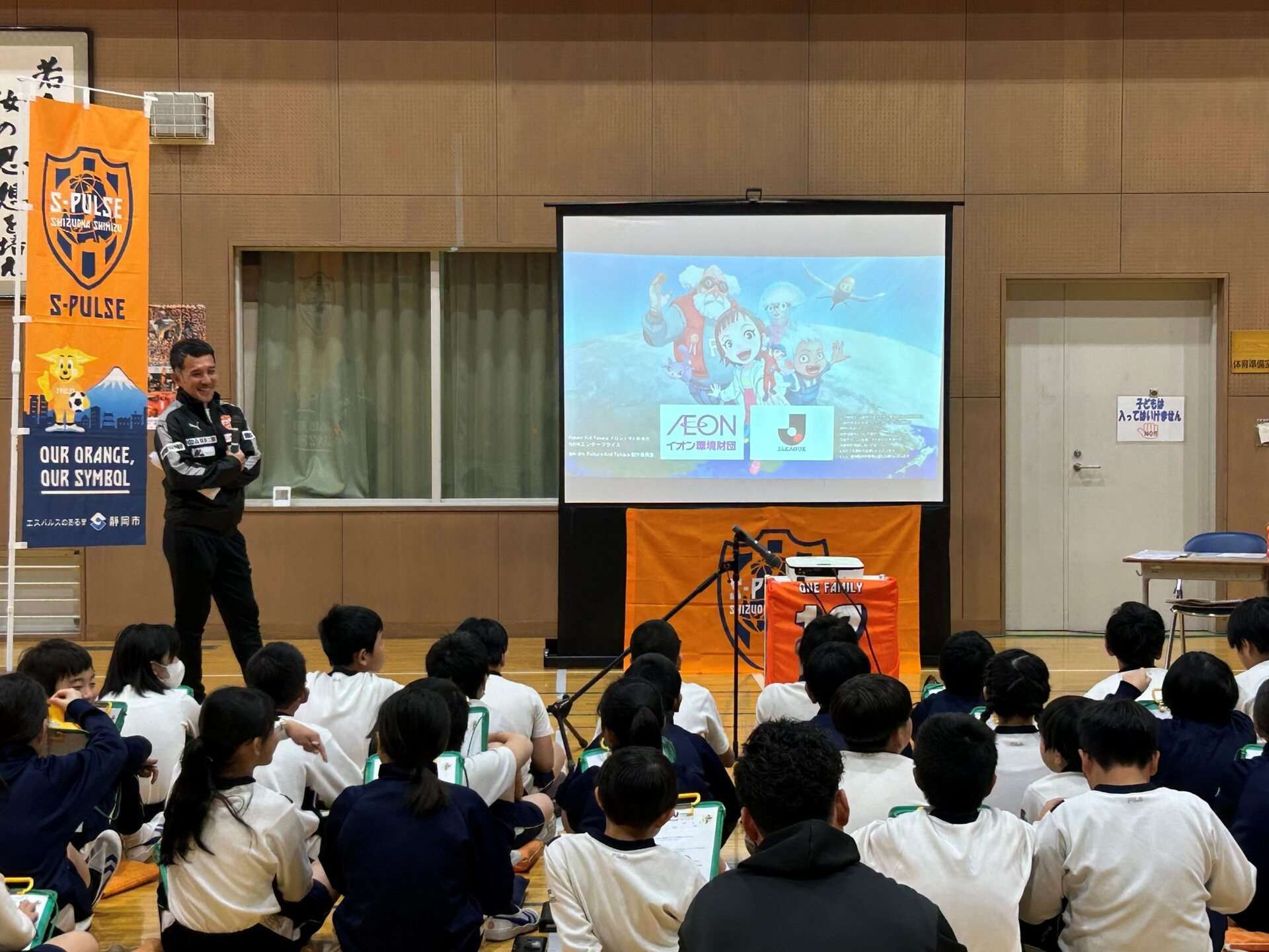 11月19日(水)東海大学付属静岡翔洋小学校(5,6年生 112名)にて『Jリーグ環境教育授業』を実施し、<Jリーグ気候アクションアンバサダー>の伊東 輝悦クラブアンバサダーが講師を務めました。