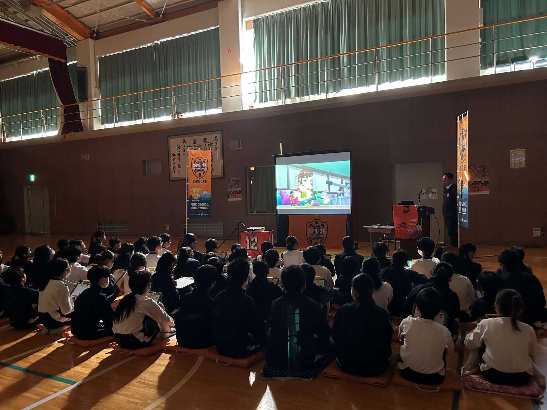 最後にエスパルスが取り組む環境活動 エスパルスエコチャレンジについて紹介しました。また、地球温暖化対策のためのデコ活啓発など、日頃よりクラブと連携している静岡市GX推進課の宮崎さんより「地球の平均気温が170年前に比べ約1℃上がりました。たった1℃ですが、地球には色々な影響が出ています。今日考えてくれたアイデアを形にして1つずつでもできることに取り組んでください。」とコメントをいただきました。