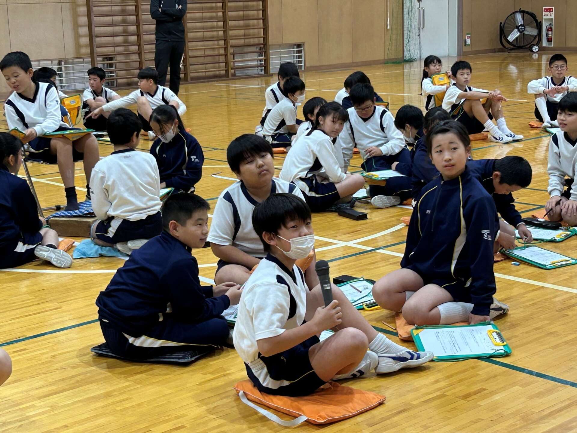 続いて気候変動の問題についてわかりやすく説明した『Future Kid Takara』というアニメを見ました。地球に今起きていることや、外で遊んだりスポーツをすることにも影響が出ていることが紹介され、児童たちは真剣な目で途中メモを取りながら視聴してくれました。暑さ指数(WBGT値)31を超えると屋外での運動が原則中止となること、プールの中でも汗をかいて熱中症になりやすいことなど、児童たちにとって身近な内容も含まれ印象に残ったようでした。